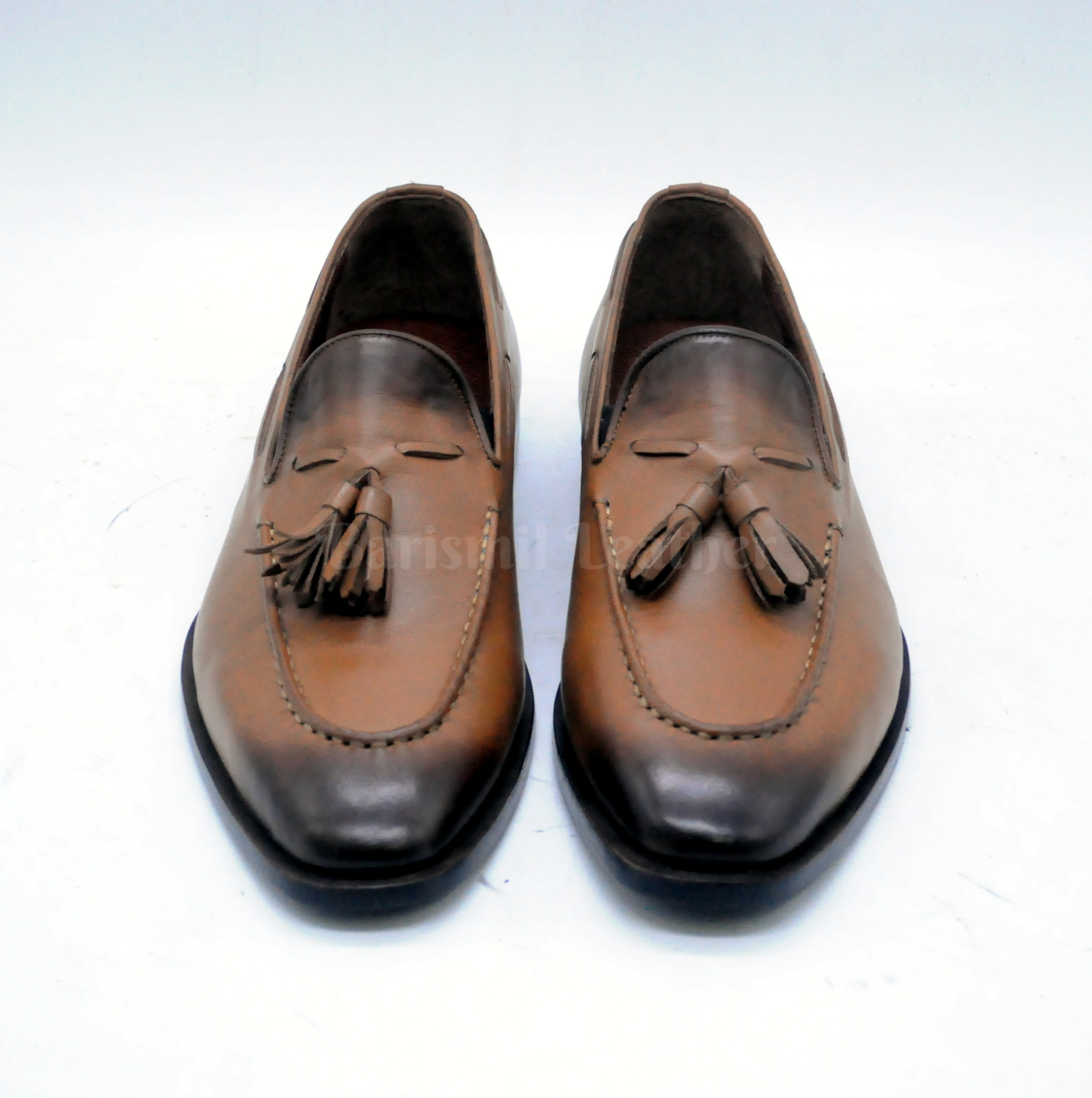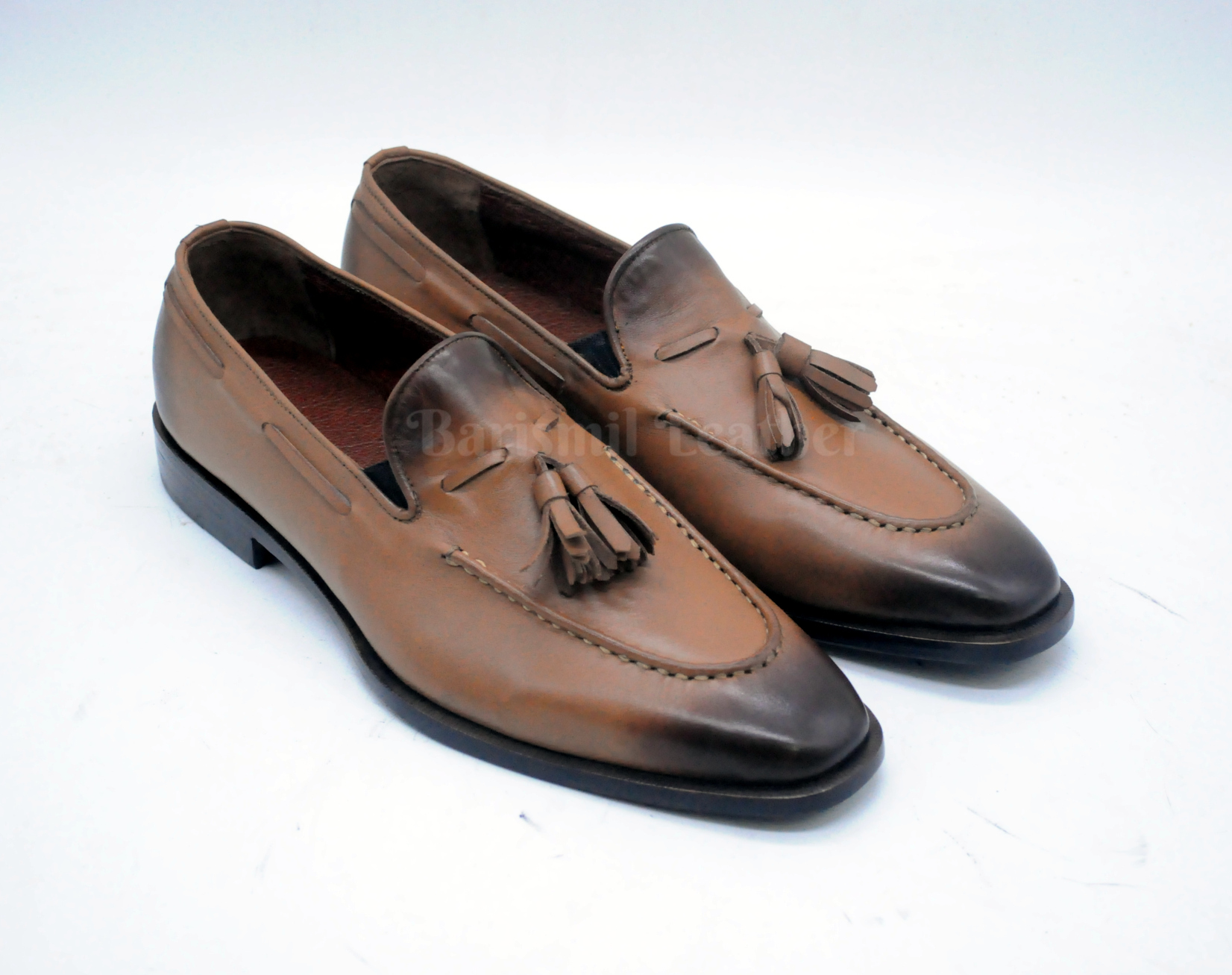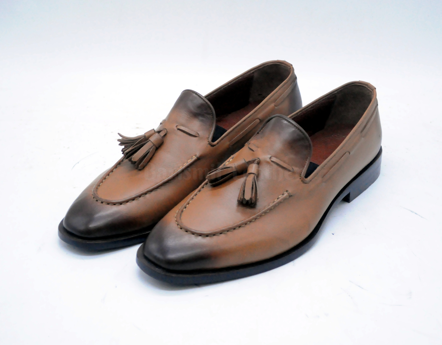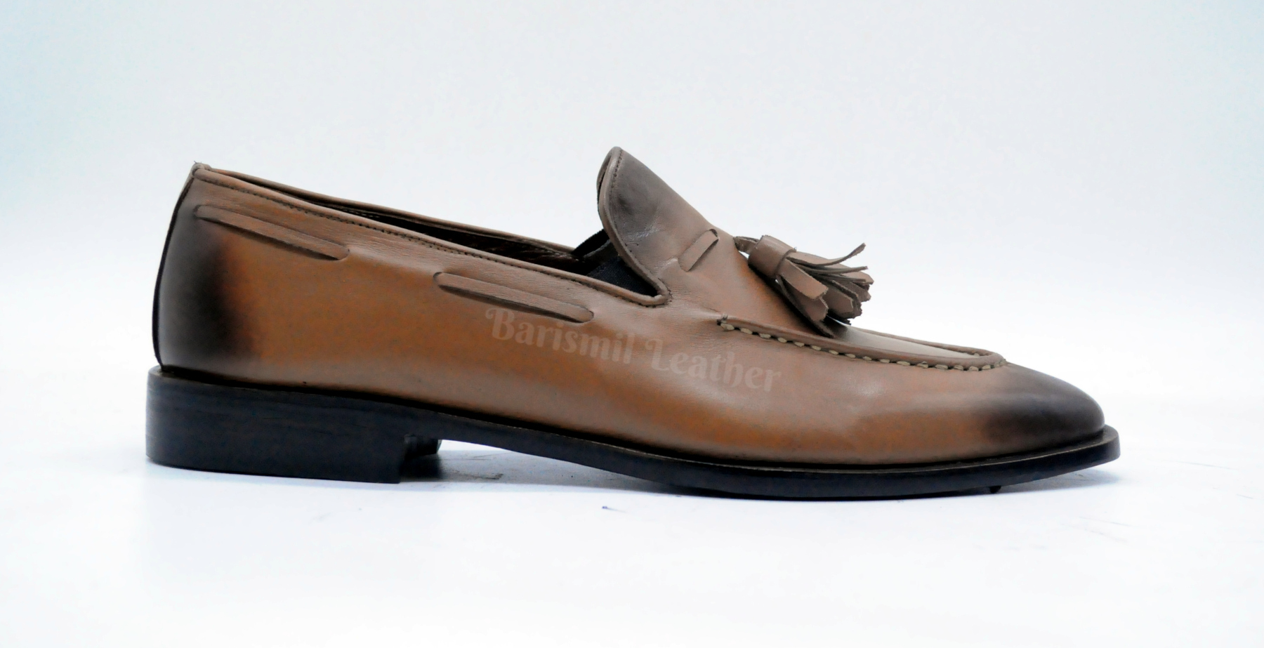 Leather Handmade Brown Tassel Loafers Shoes For Men', Dress Shoes