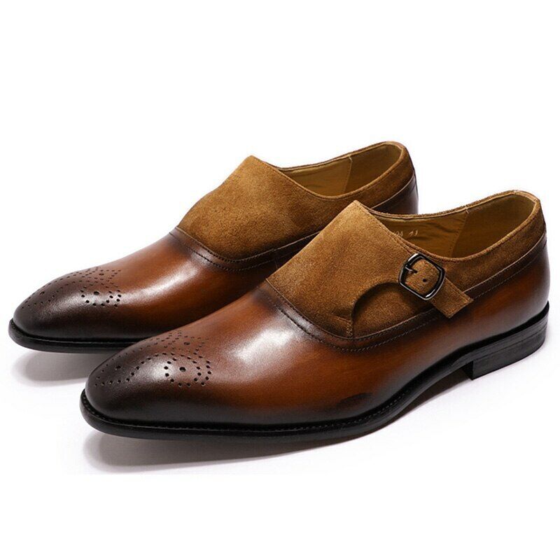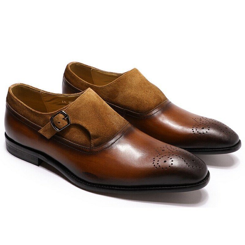 Handmade Leather Brown Monk Strap Shoes For Men', Dress Shoes