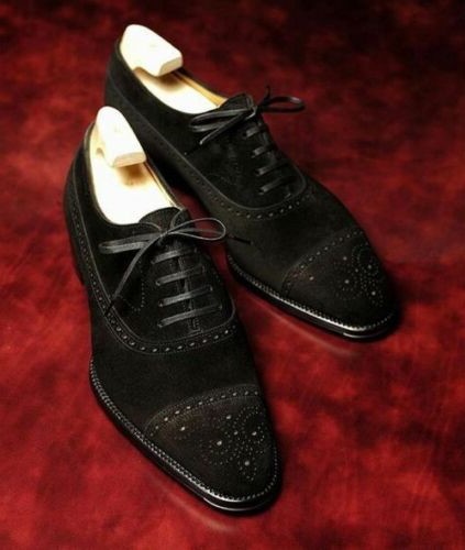 Men's Black Suede Leather Handmade Dress Oxfords Shoes for Men Custom Made Shoes