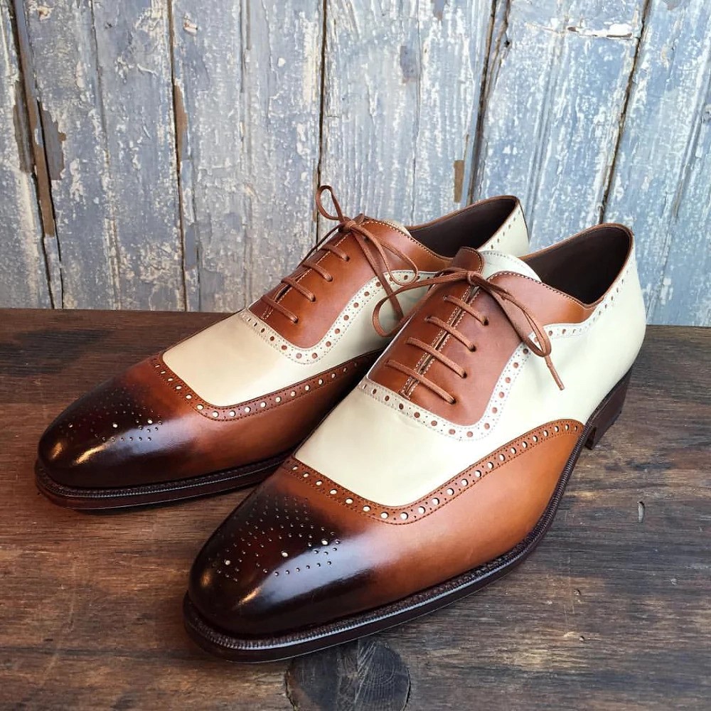Handmade Men Two Tone Formal Lace Up Dress Shoes Custom Made on Order Shoes