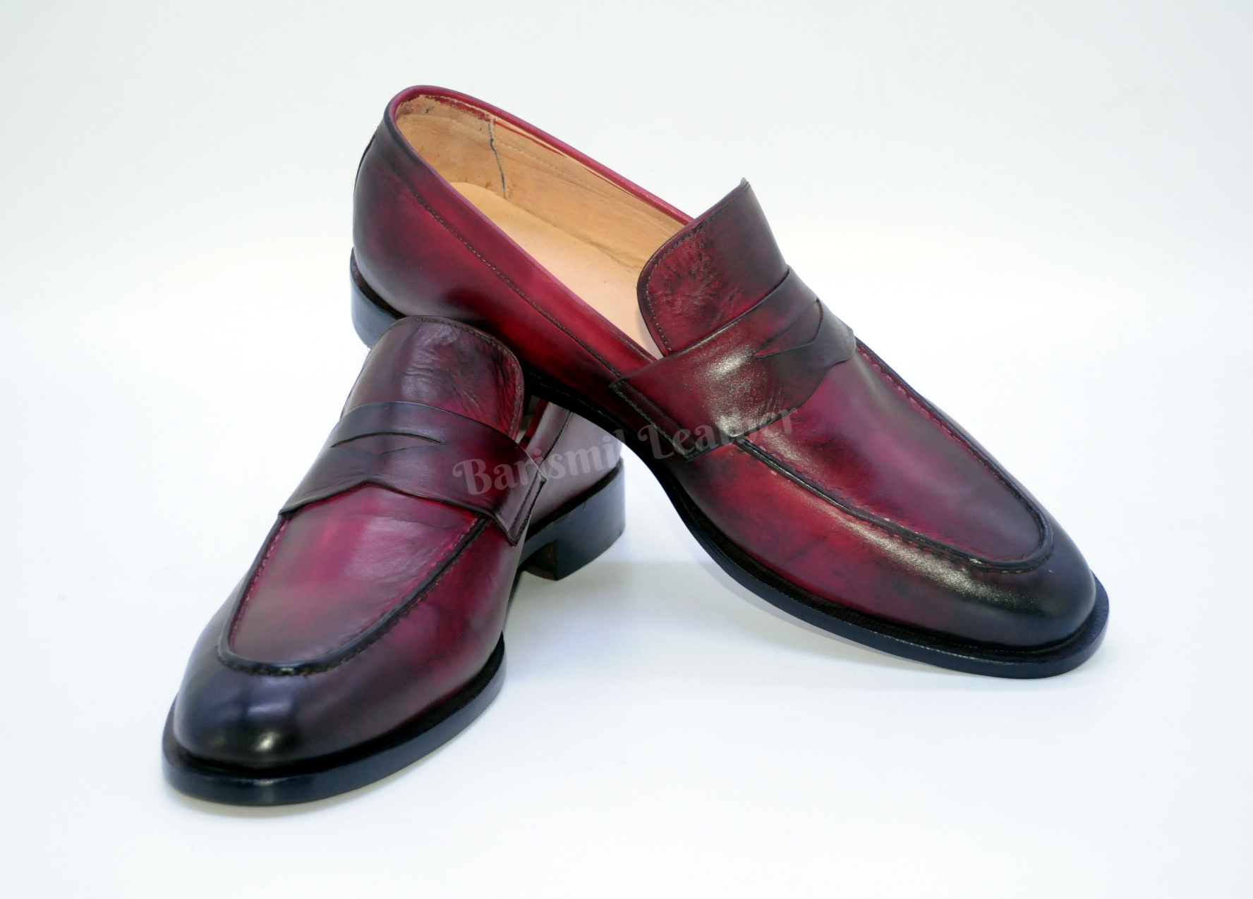 Handmade Leather Burgundy Patina Loafers Shoes Leather Dress Shoes for Men