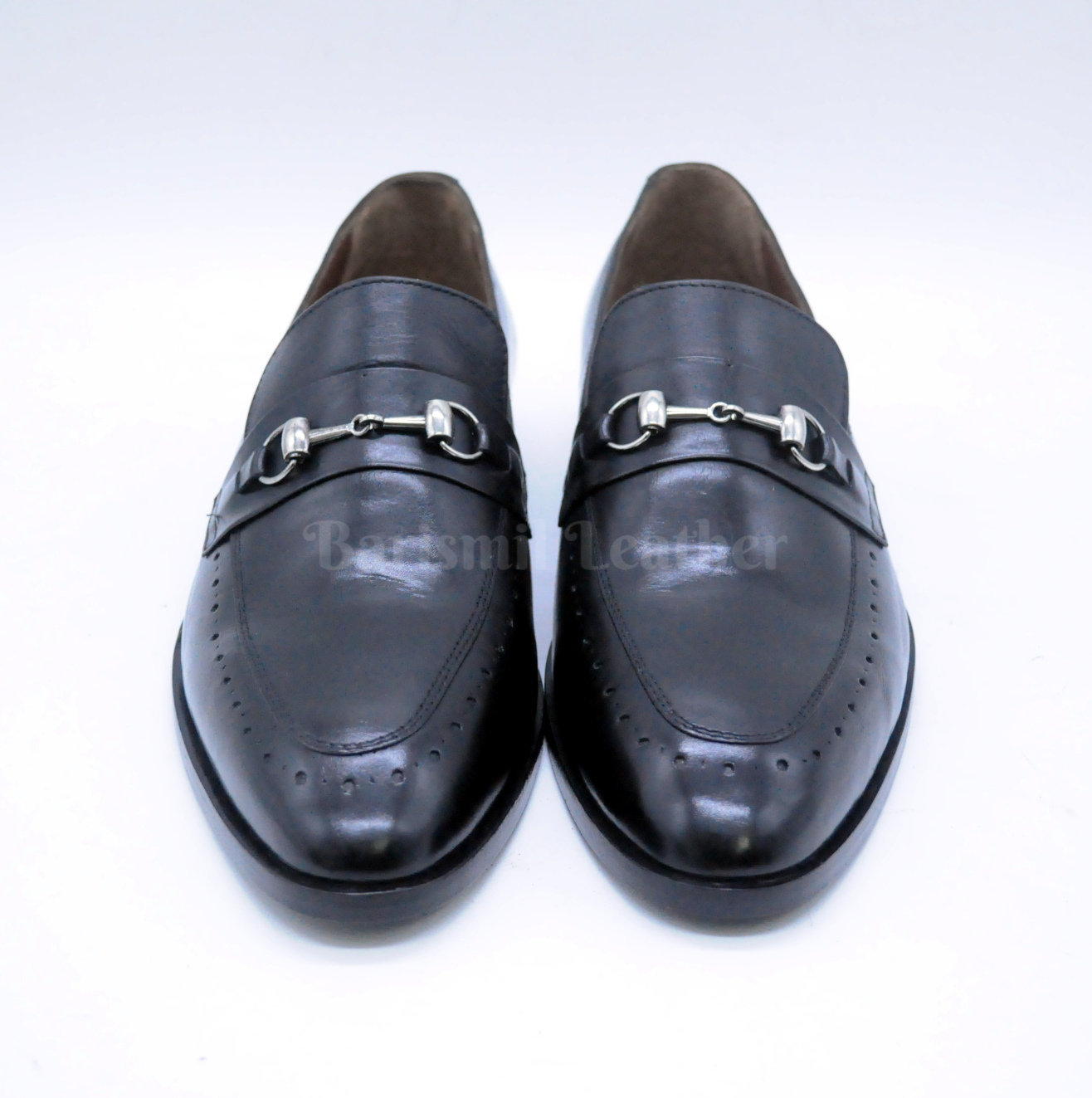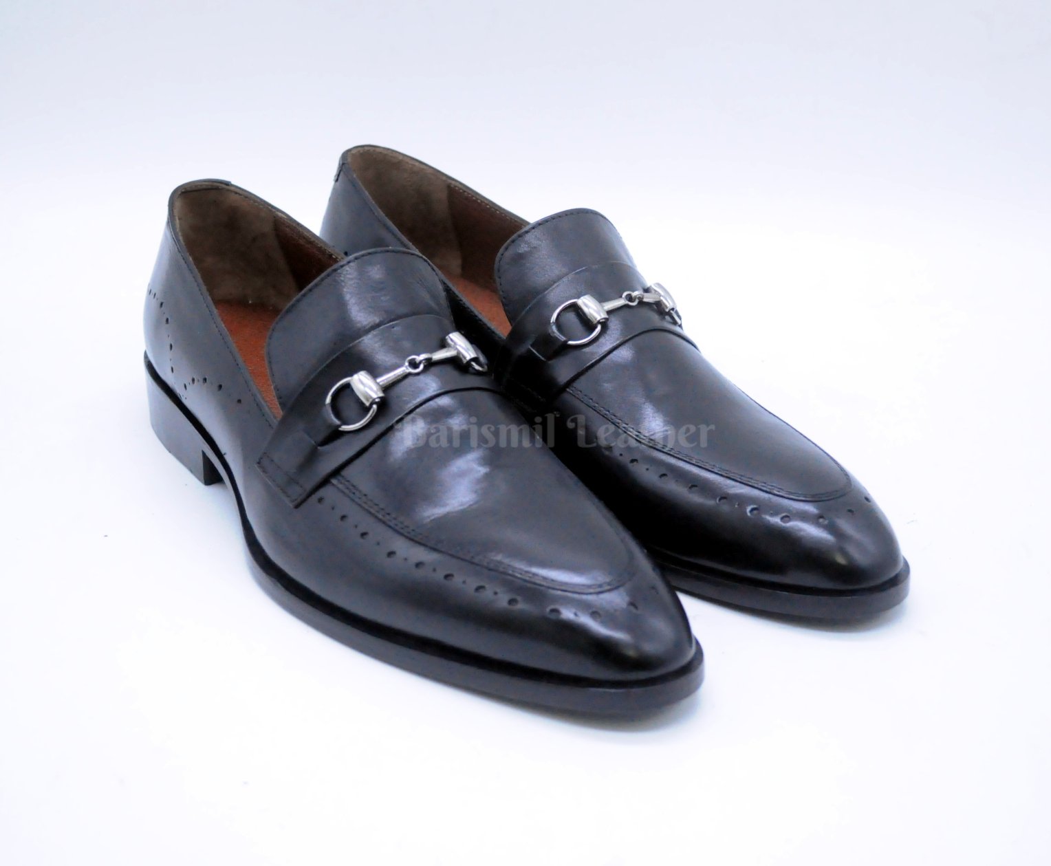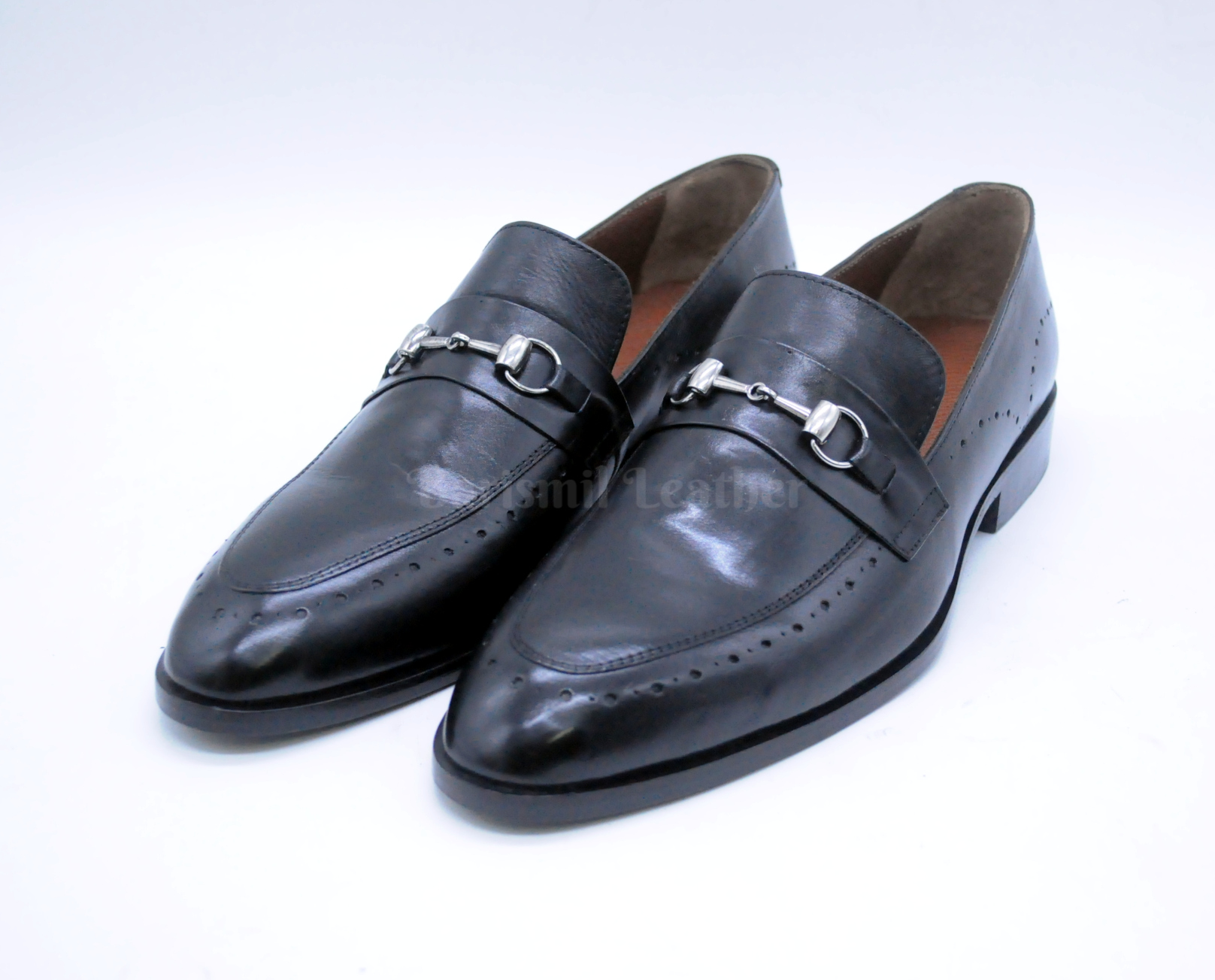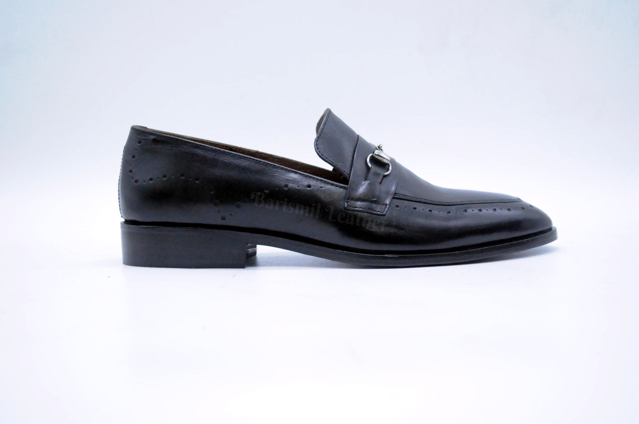 Handmade Black Leather Clip Loafers for Men Custom Men's Dress Loafers