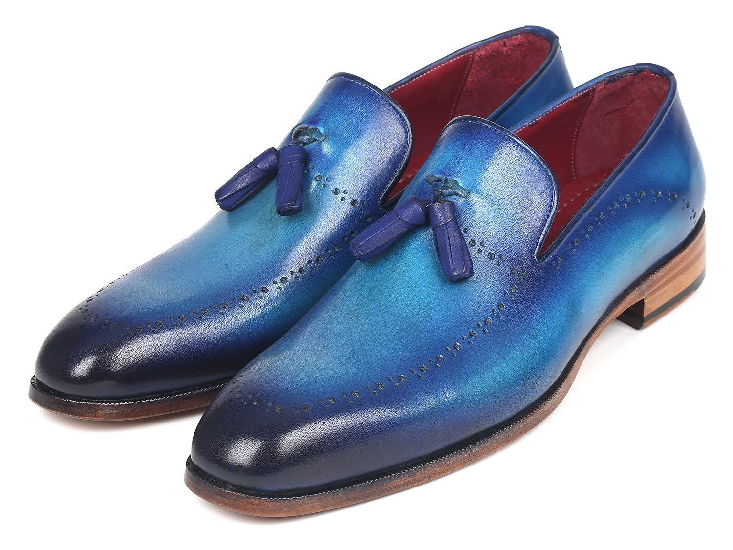 New Blue Patina Tassel Loafers Dress Shoes Men, Handmade Leather Shoes