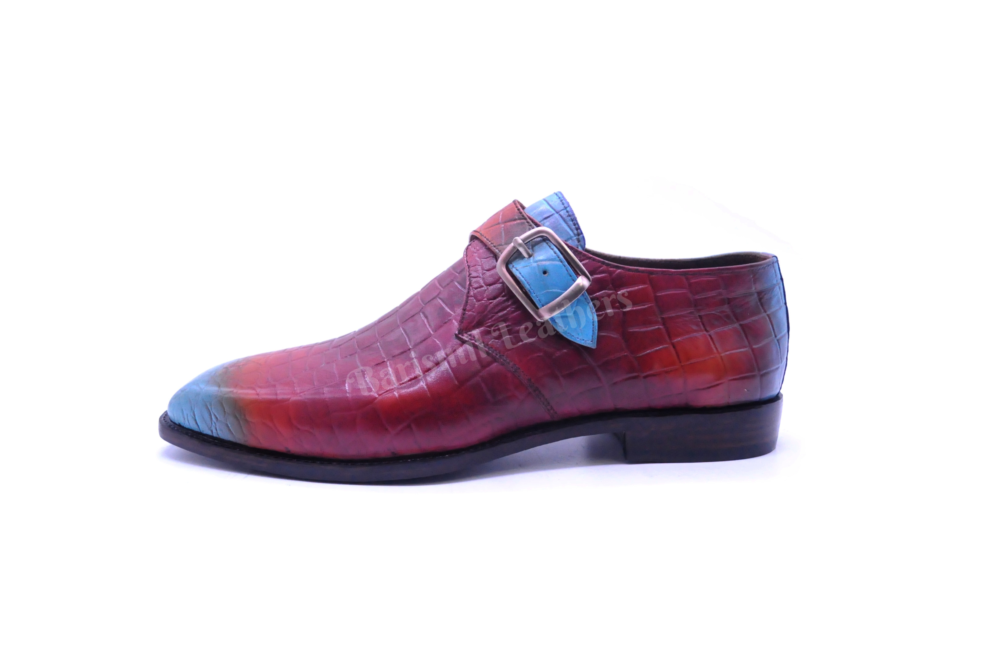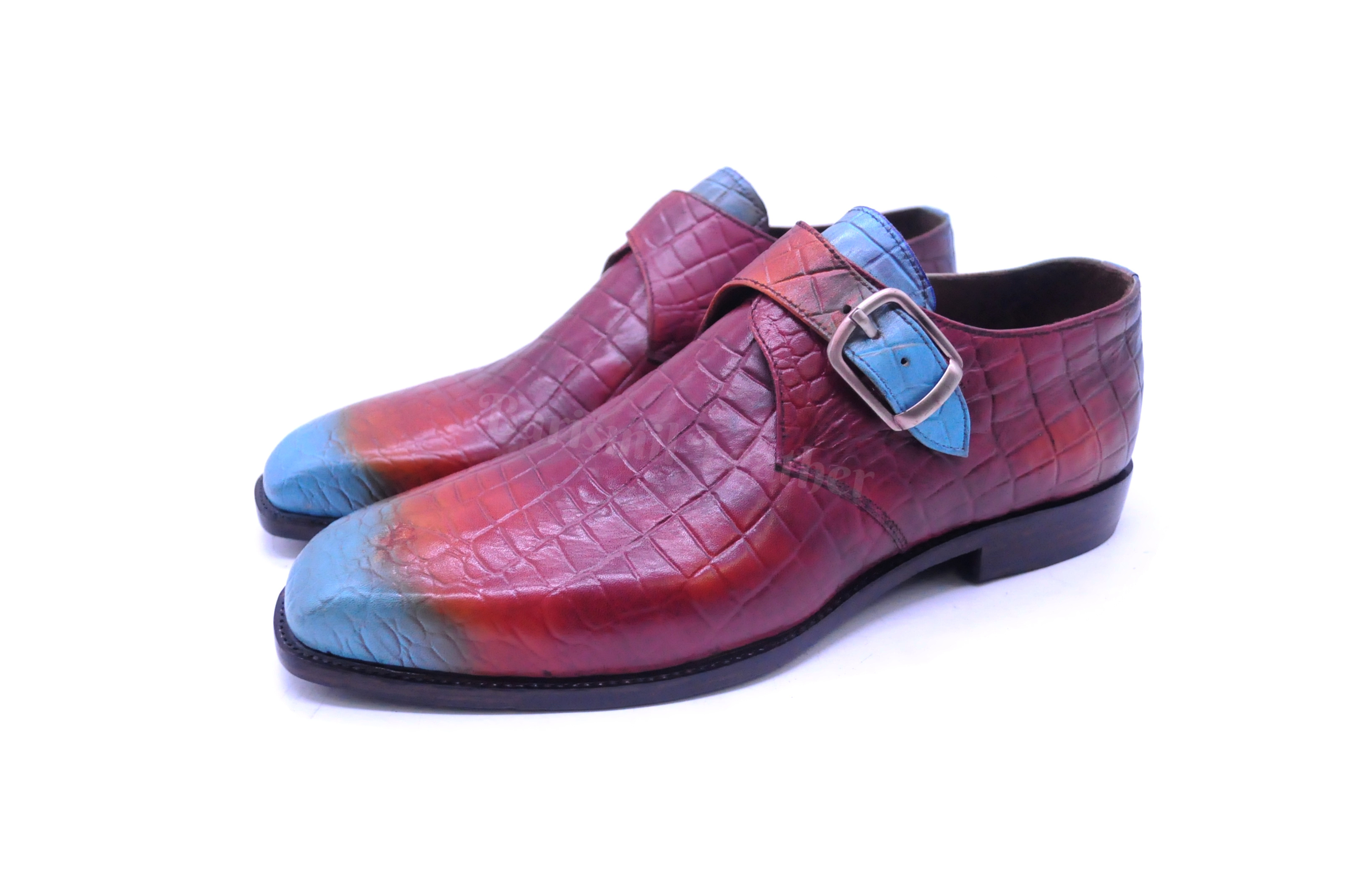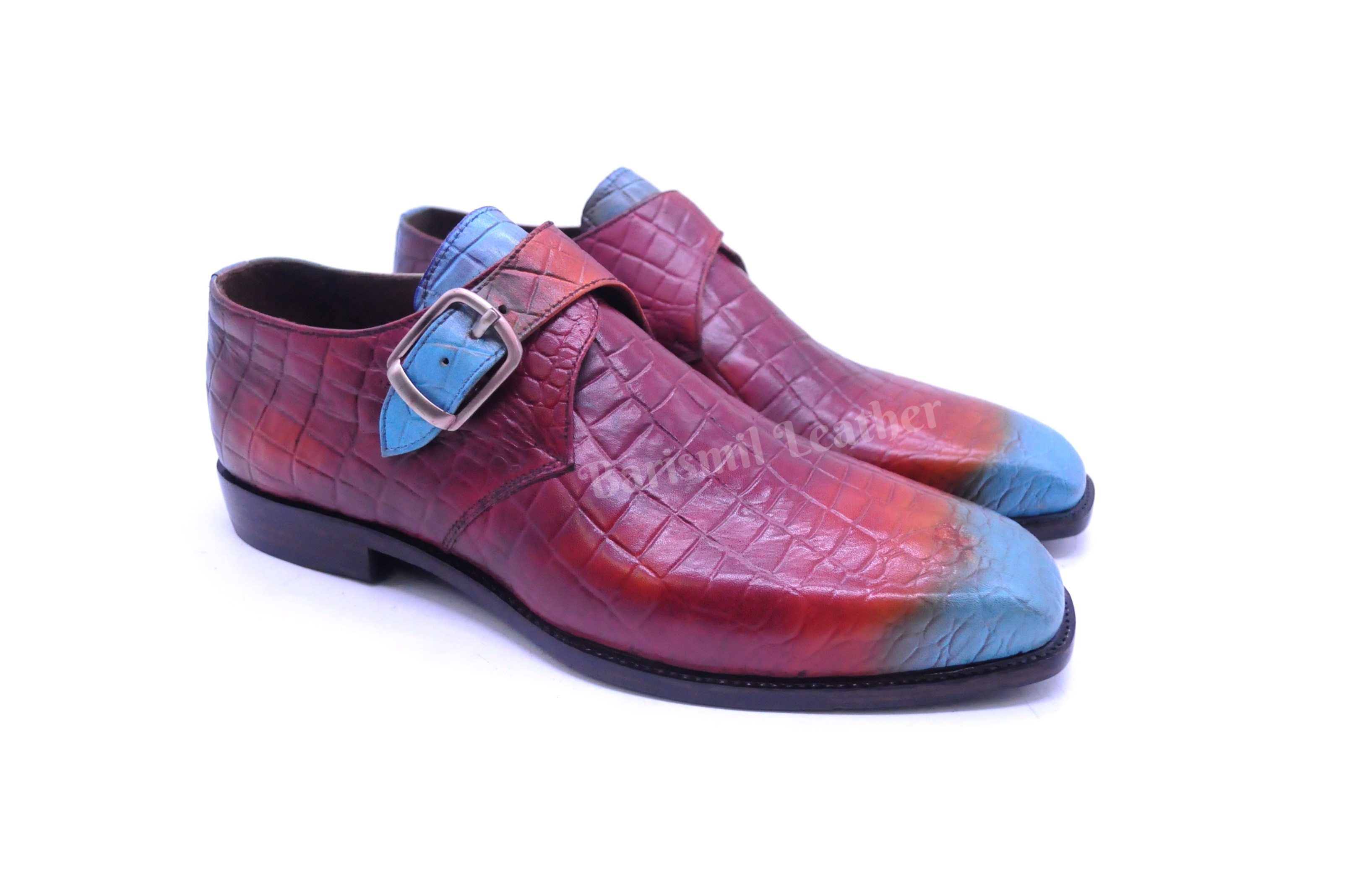 Two Tone Patina Monk Leather shoes Men's, Handmade Custom Shoes