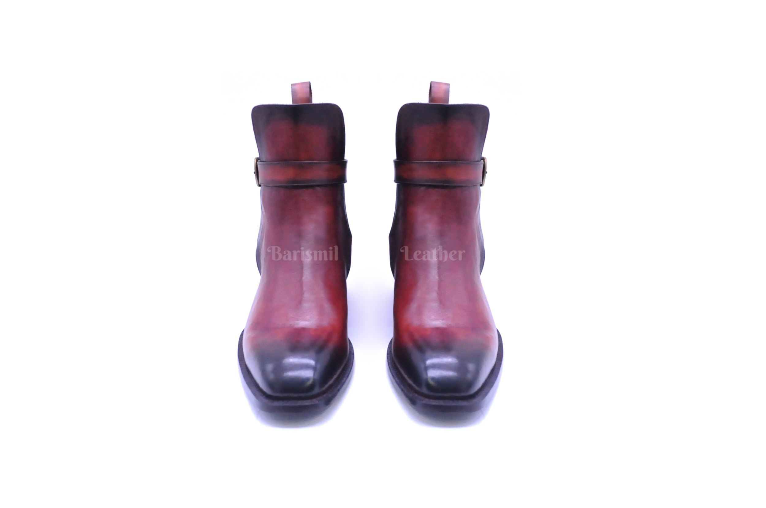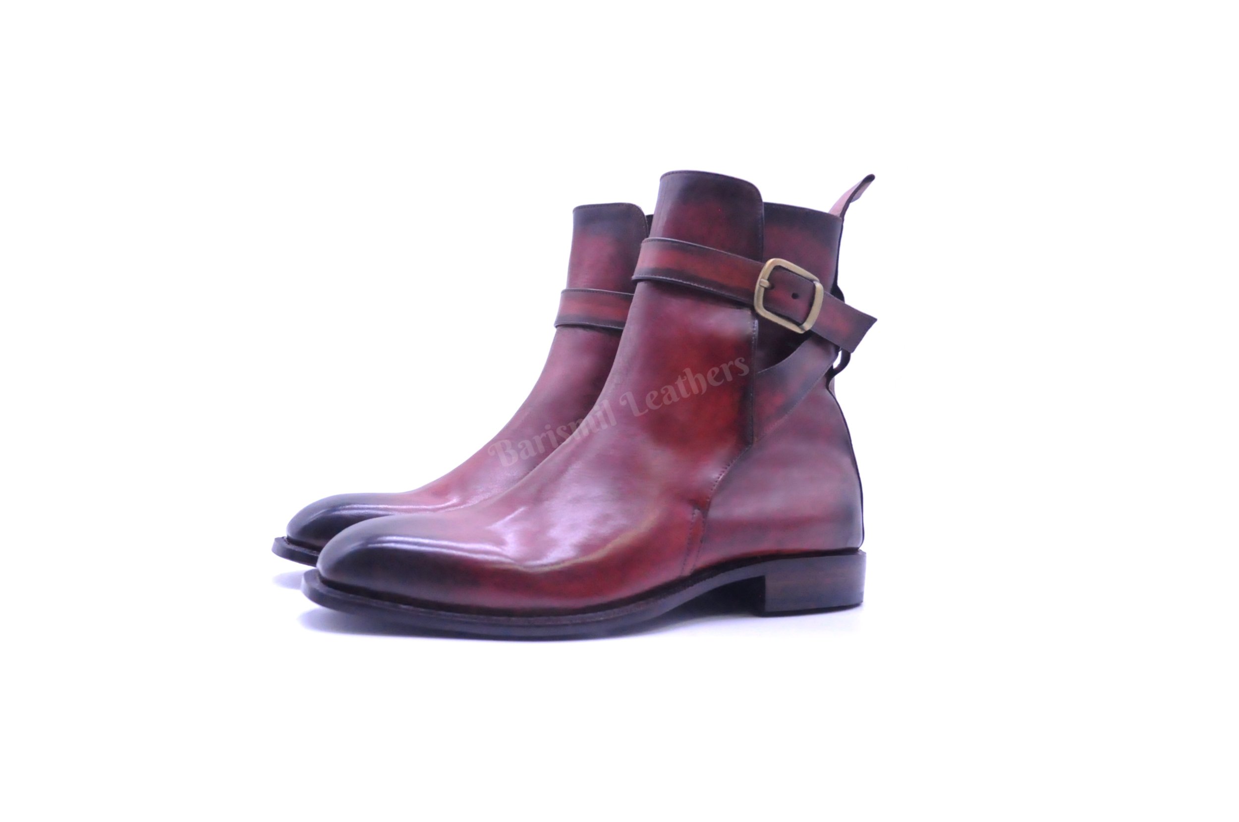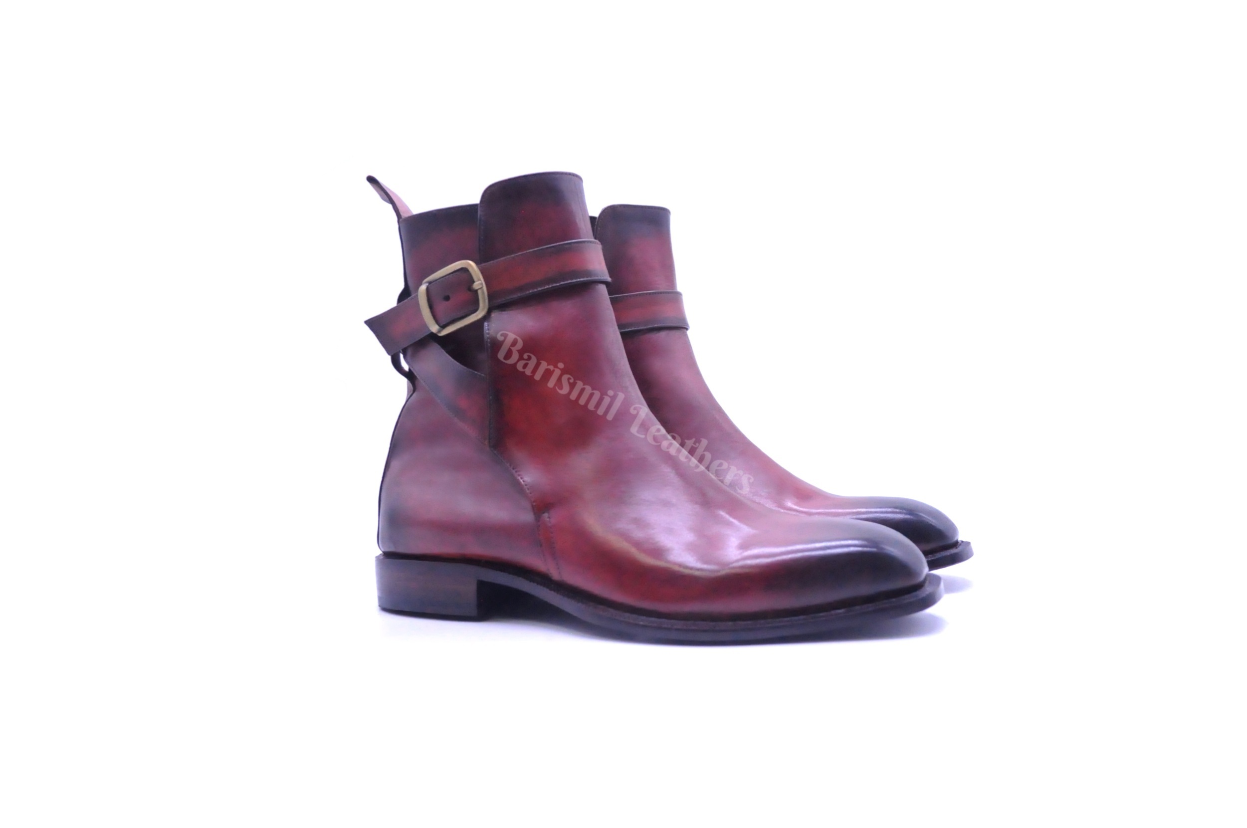 New Handmade Leather Burgundy Patina Monk Strap ankle Lace up Dress Men Boots Custom Made Boots