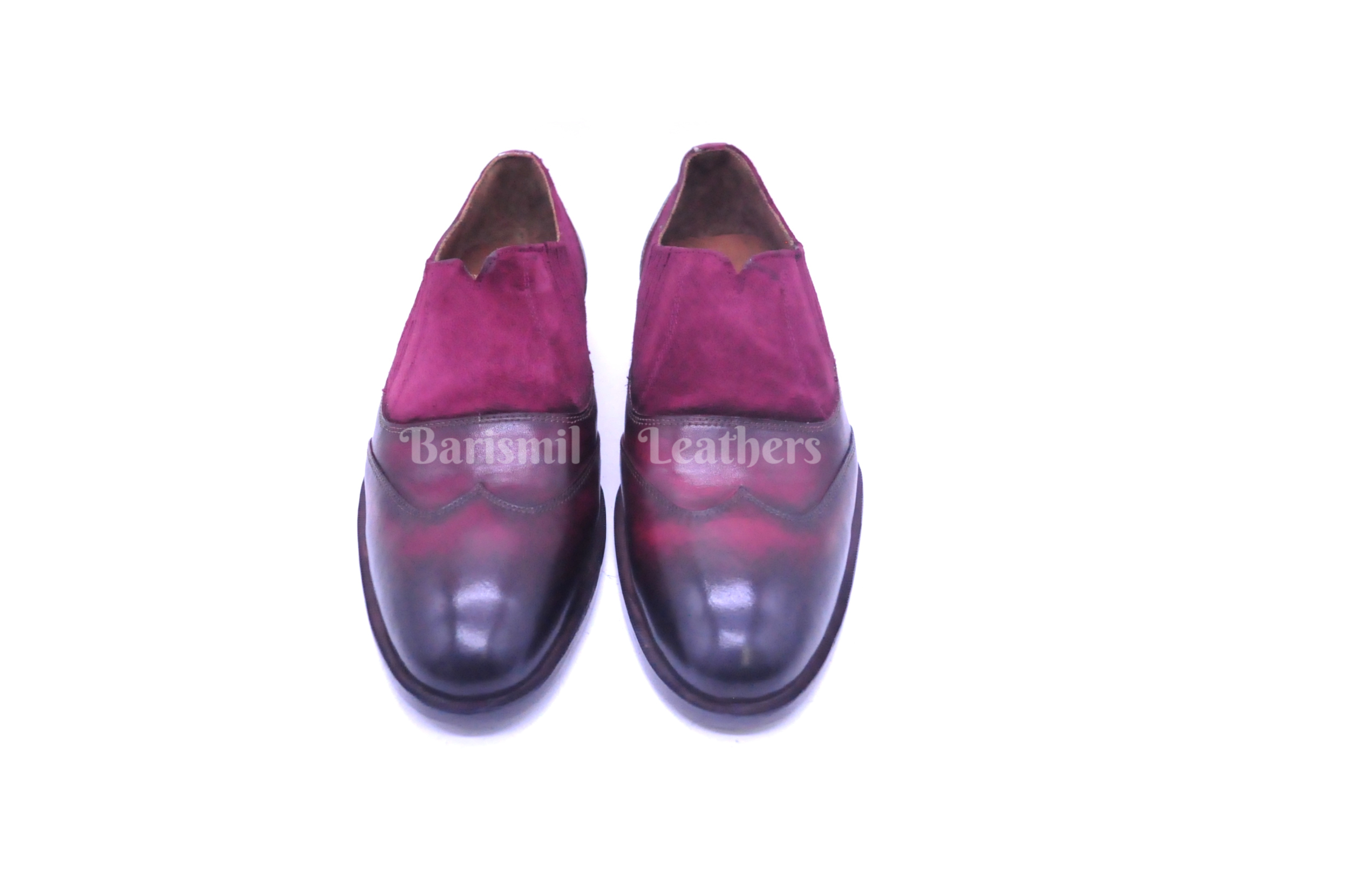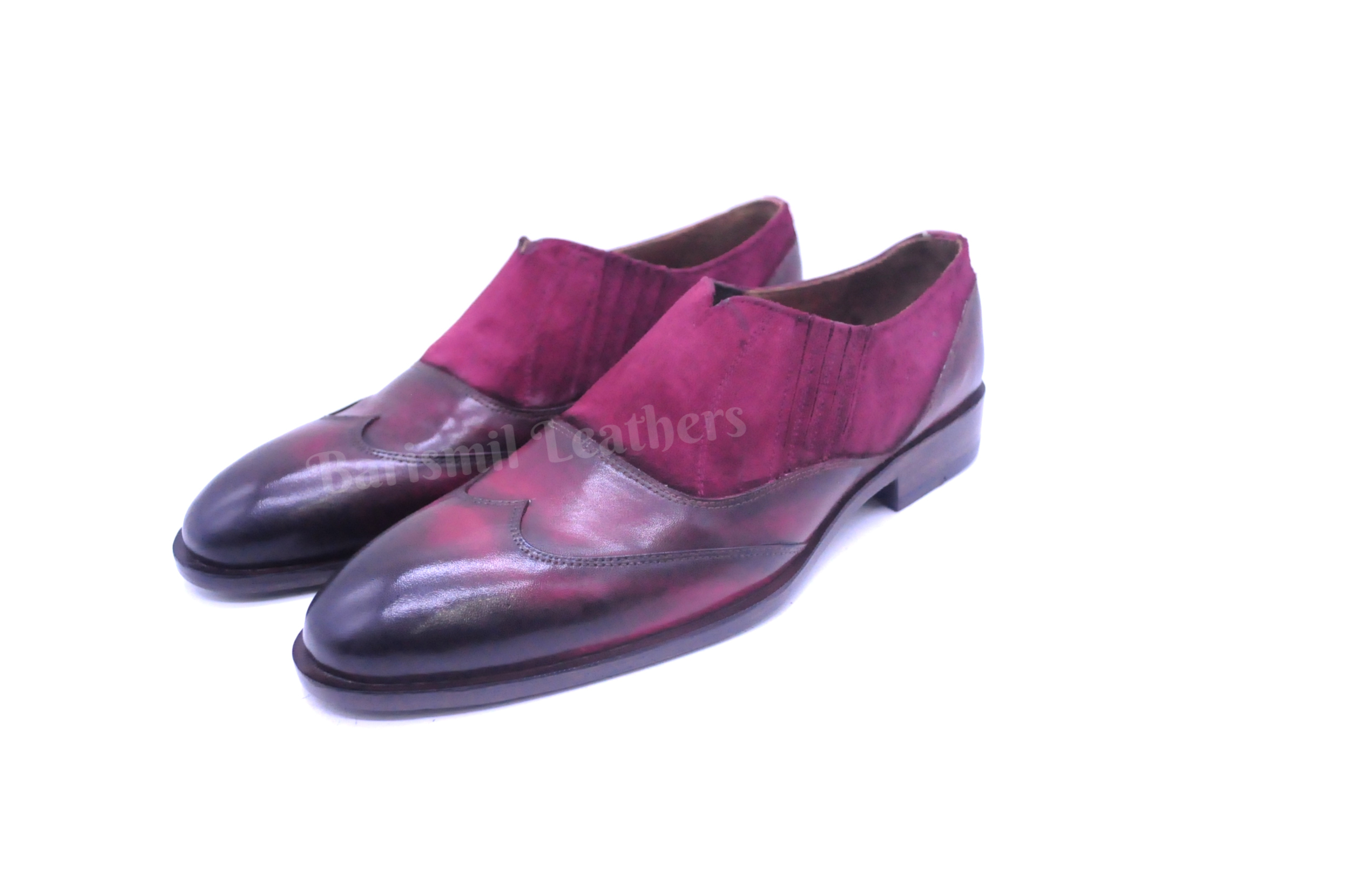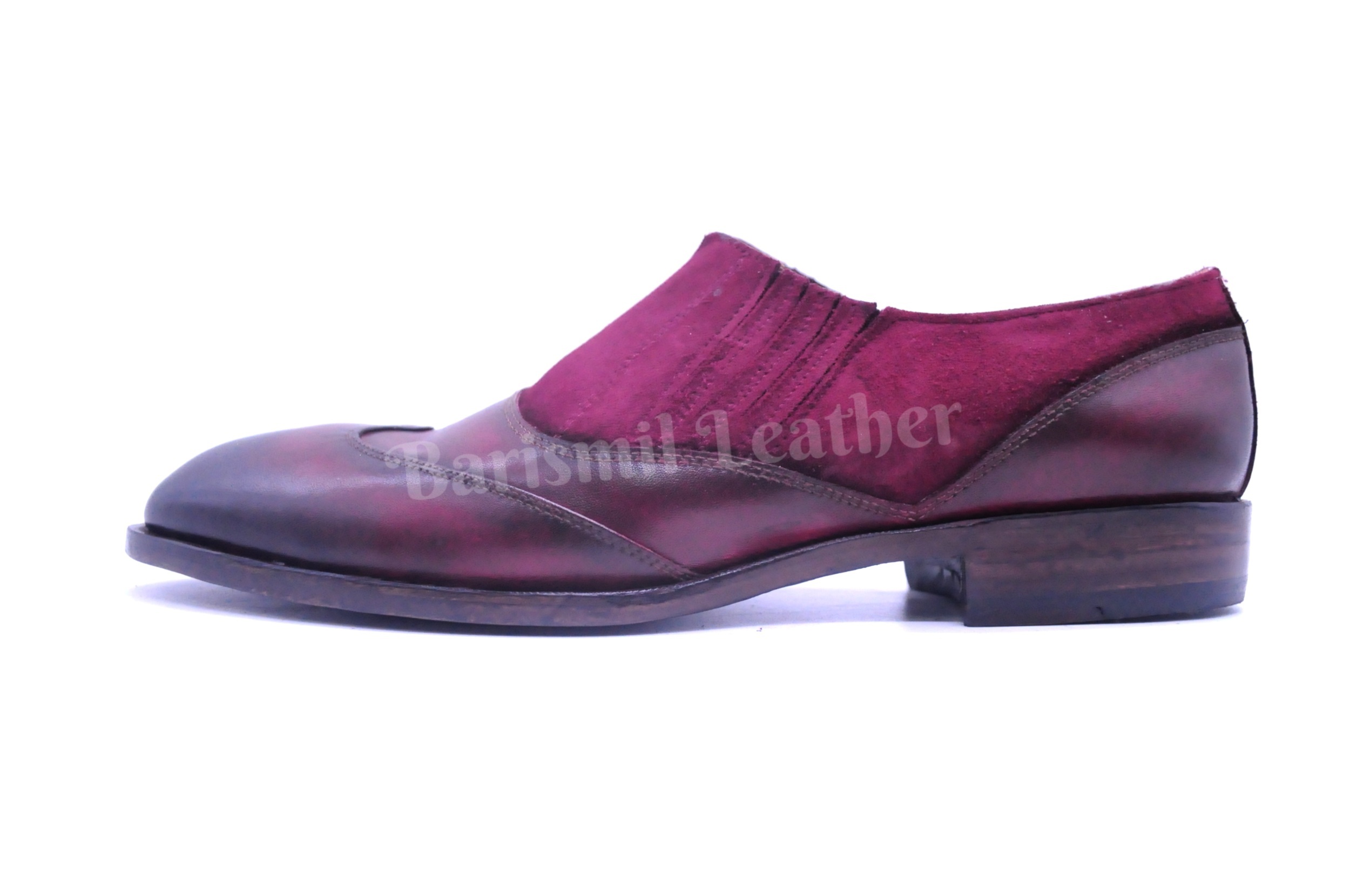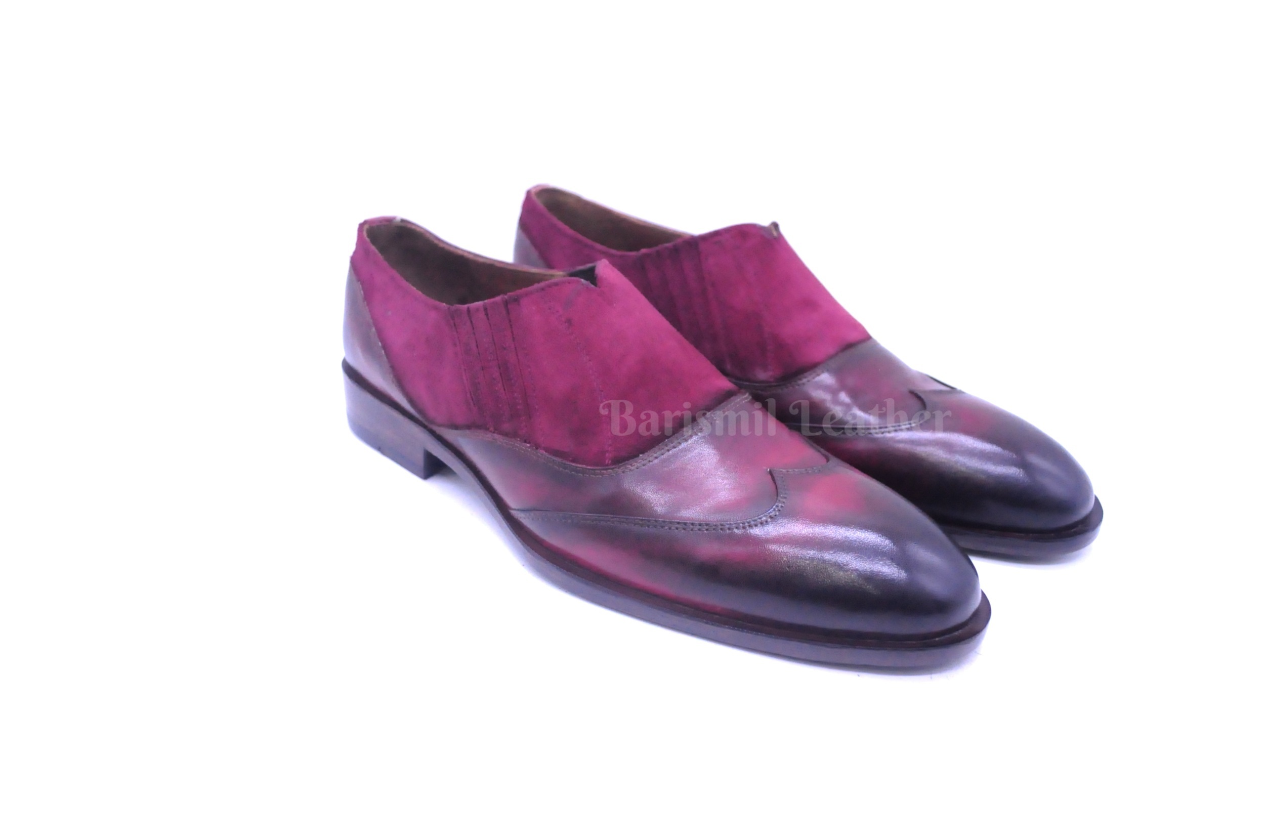 Handmade Leather Two tone Burgundy Patina Loafers Formal Custom Made Shoes