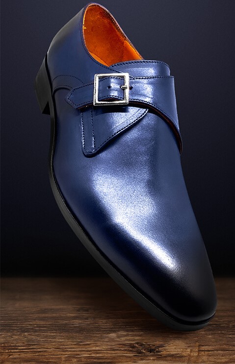 Handmade Leather Blue Patina Monk Strap Men Dress Formal Custom Made Shoes
