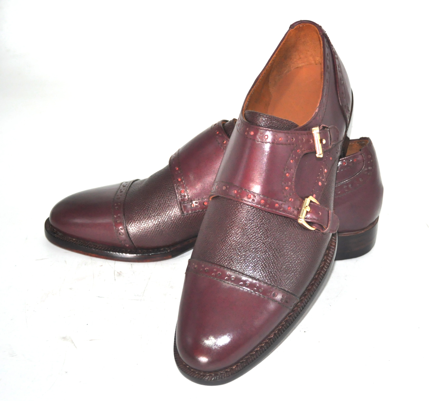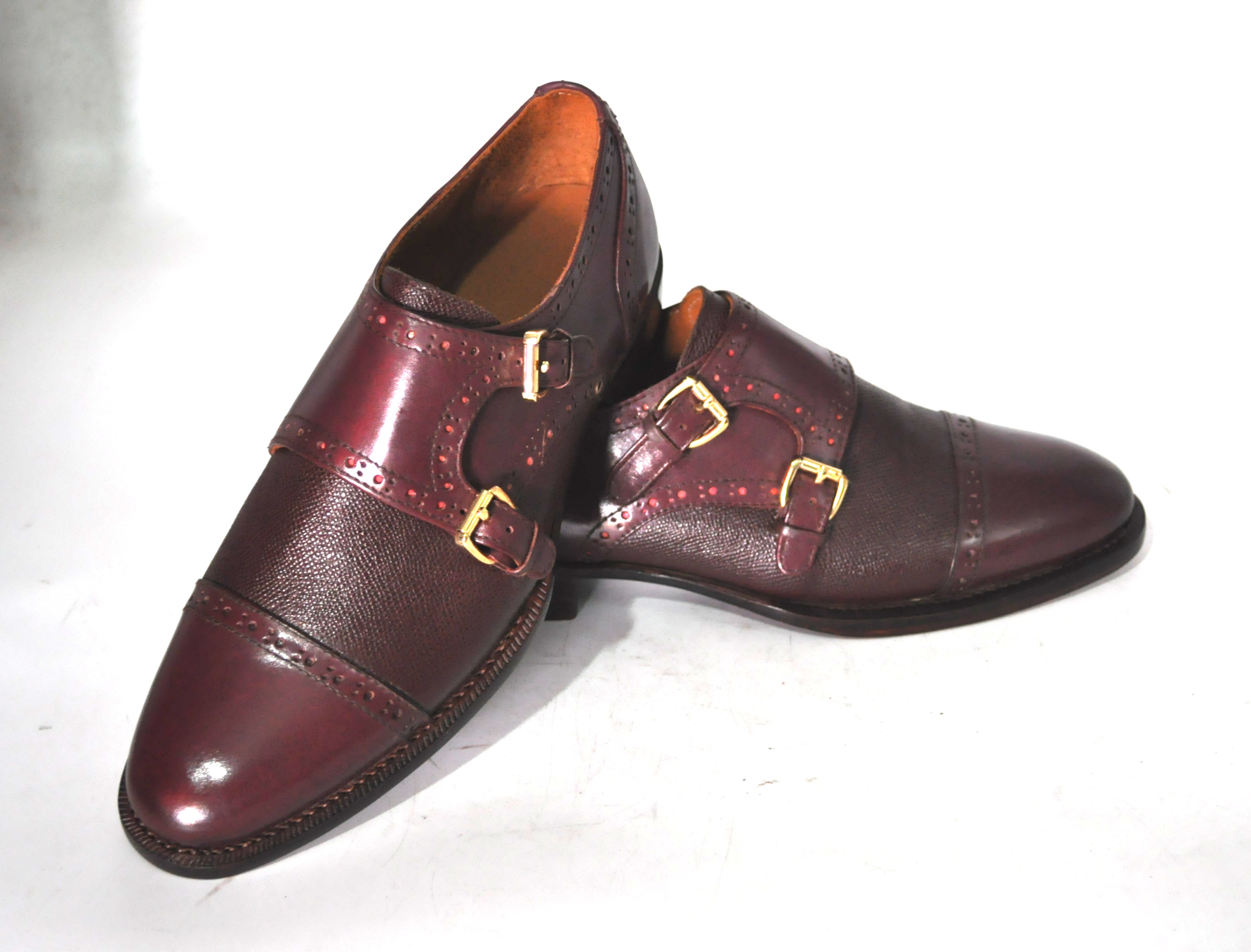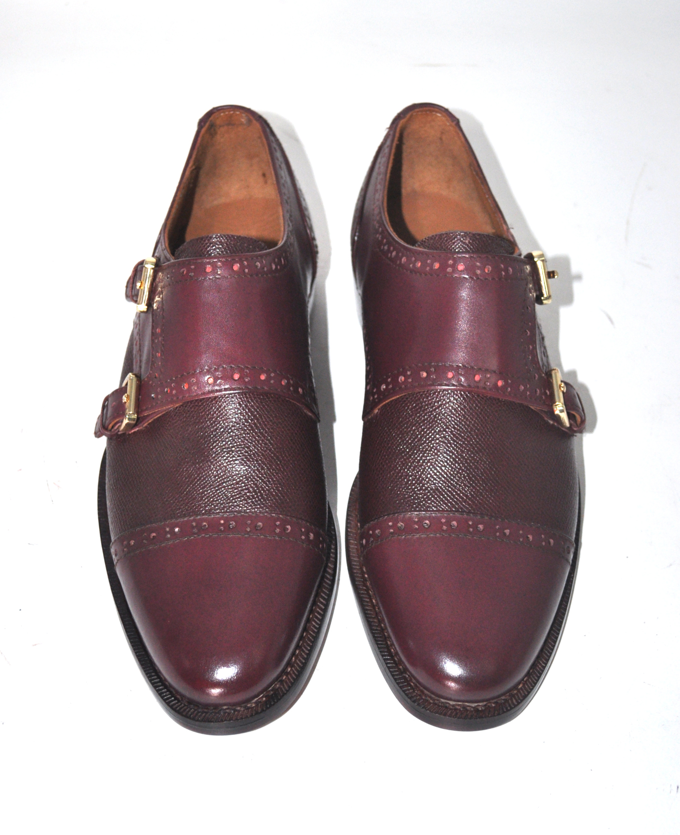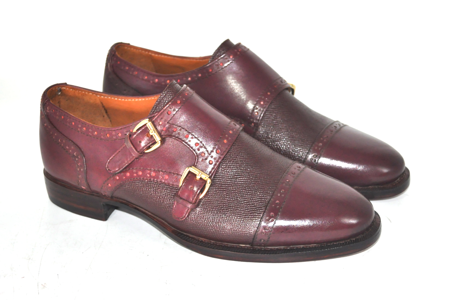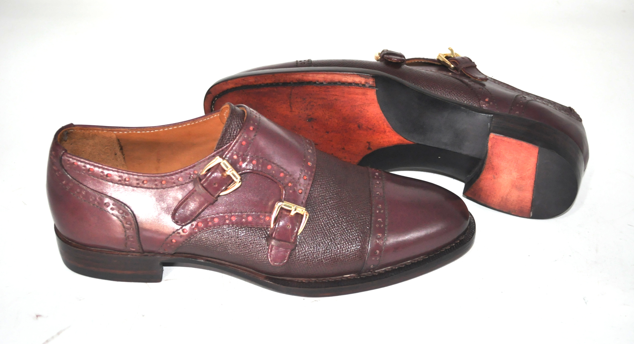 Handmade Leather Burgundy Double Monk Strap Formal Custom Made Shoes, Dress shoes