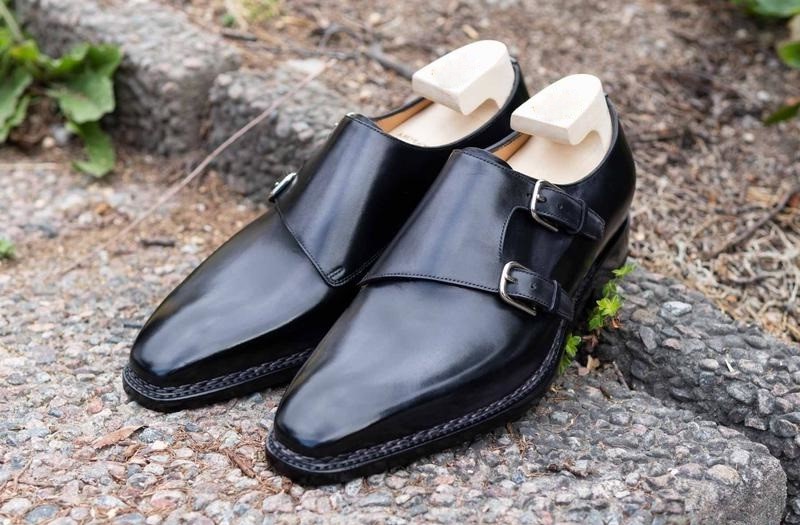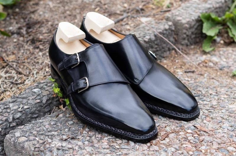Men's Handmade Double Monk Strap Leather black dress shoes formal shoes custom made on orders shoes