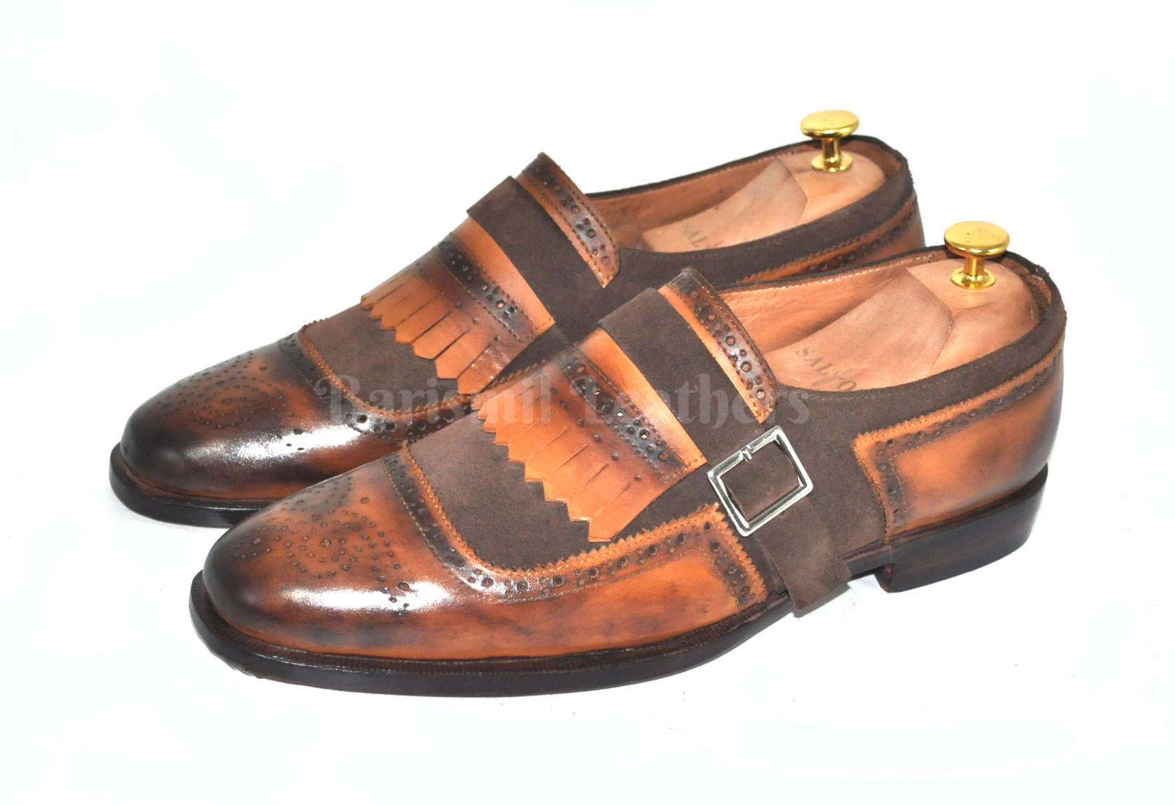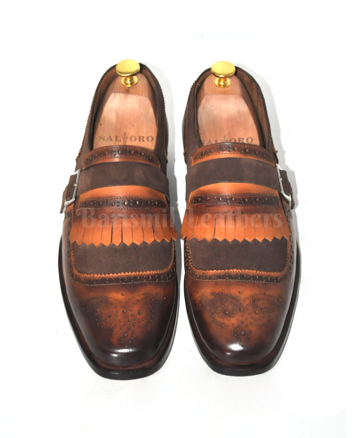 Men handmade loafers leather dress shoes brown patina frill loafers for men formal dress shoes custom shoes