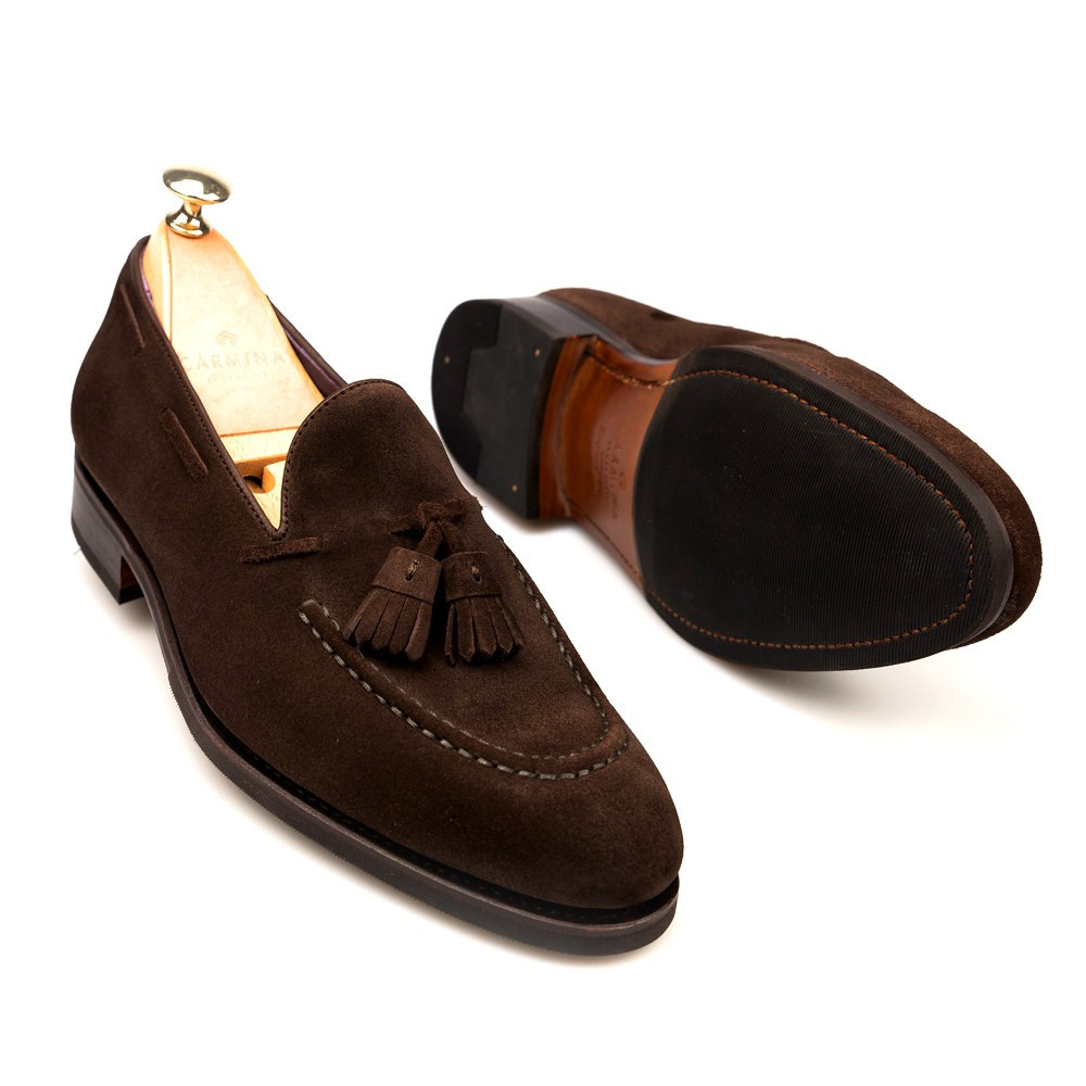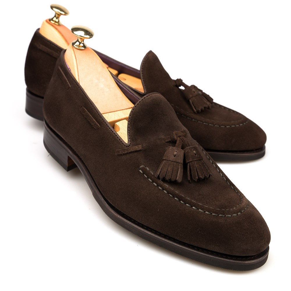 Handmade tassels loafers brown suede leather men dress formal shoes, custom made on orders shoes.