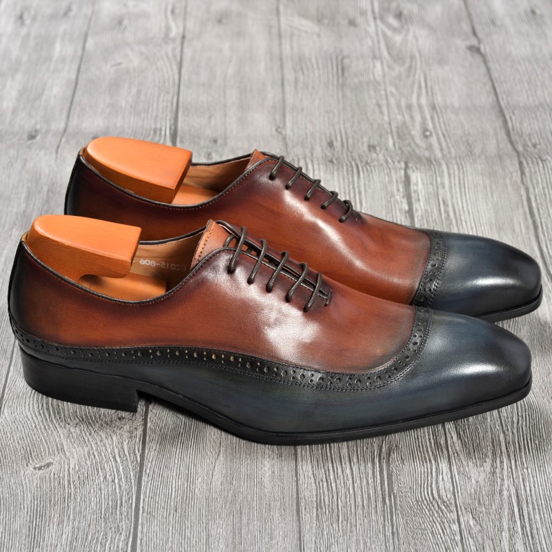 Handmade lace up oxfords leathers two tone patina leather men dress formal shoes.