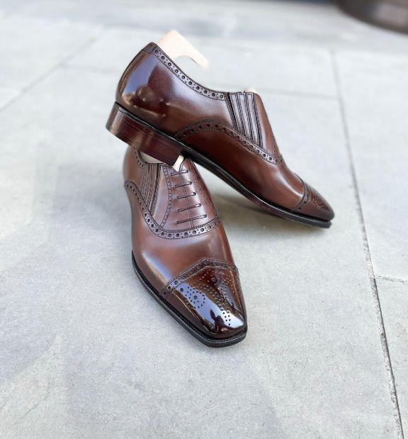 Handmade leather oxfords brown patina cap toe lace up leather shoes for men.