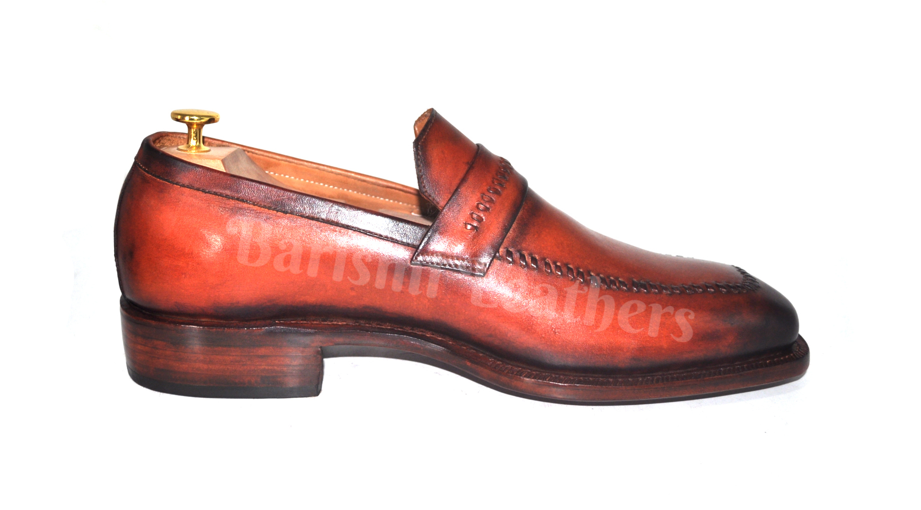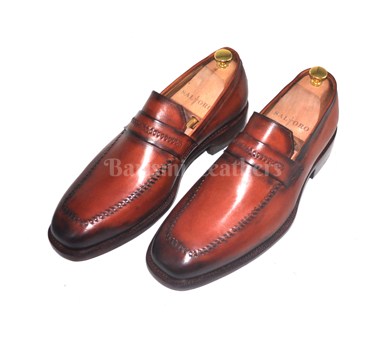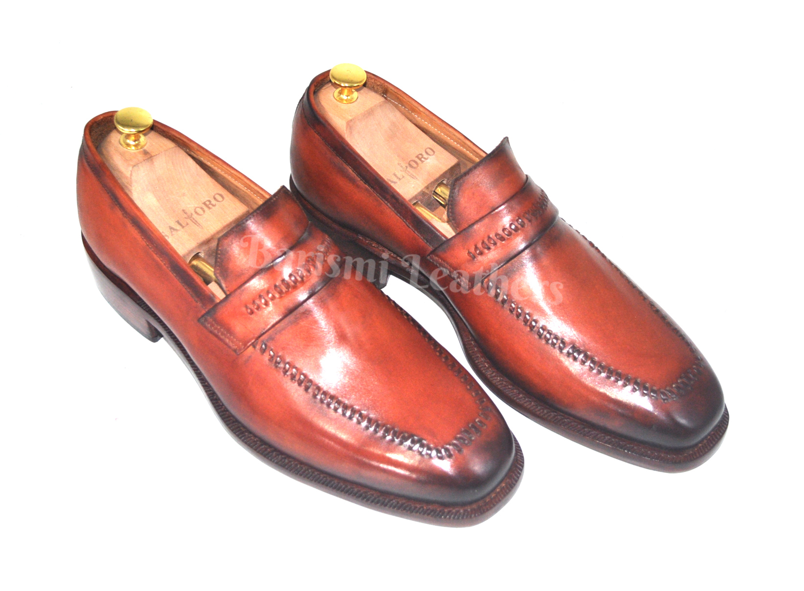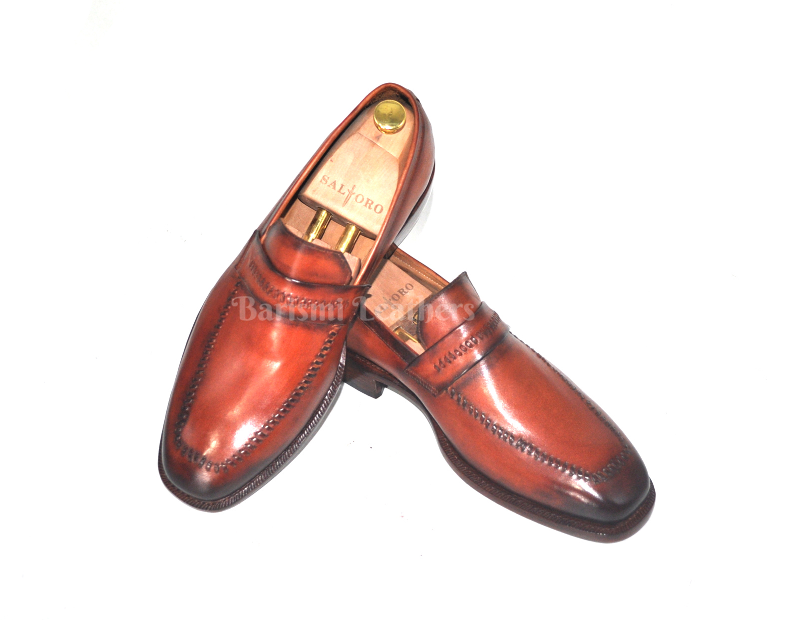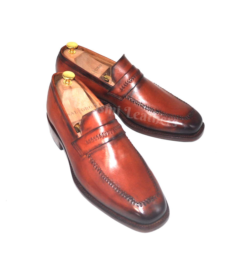 Handmade moccasins leather shoes brown patina dress loafers shoes for men.
