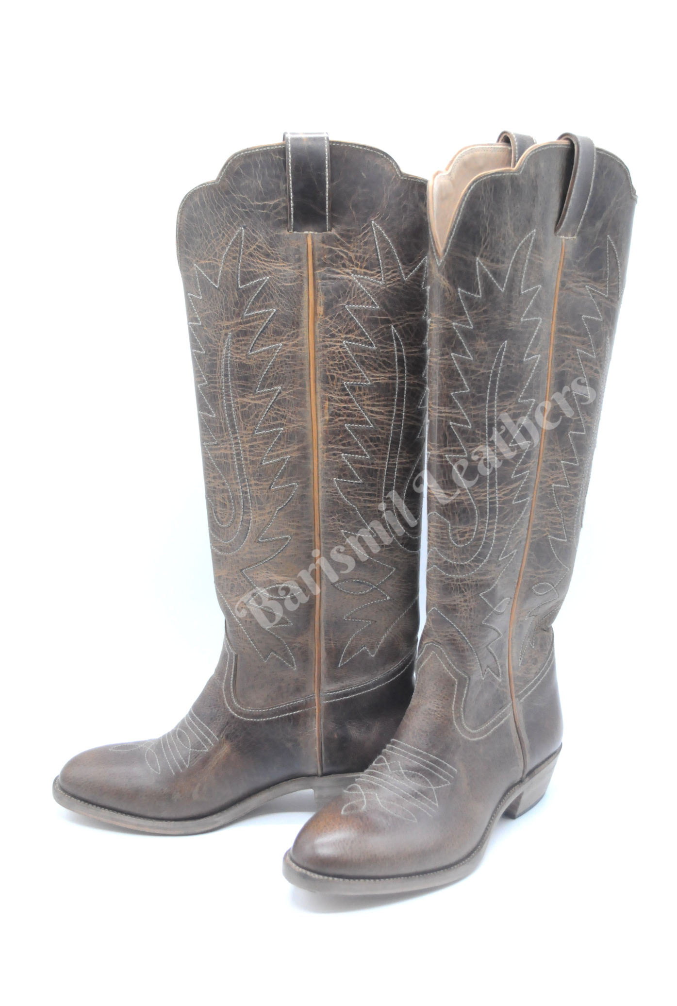 Handmade leather cowboy boot original leather riding boot for men custom made on order.