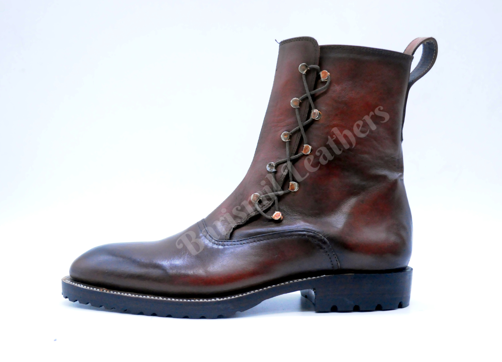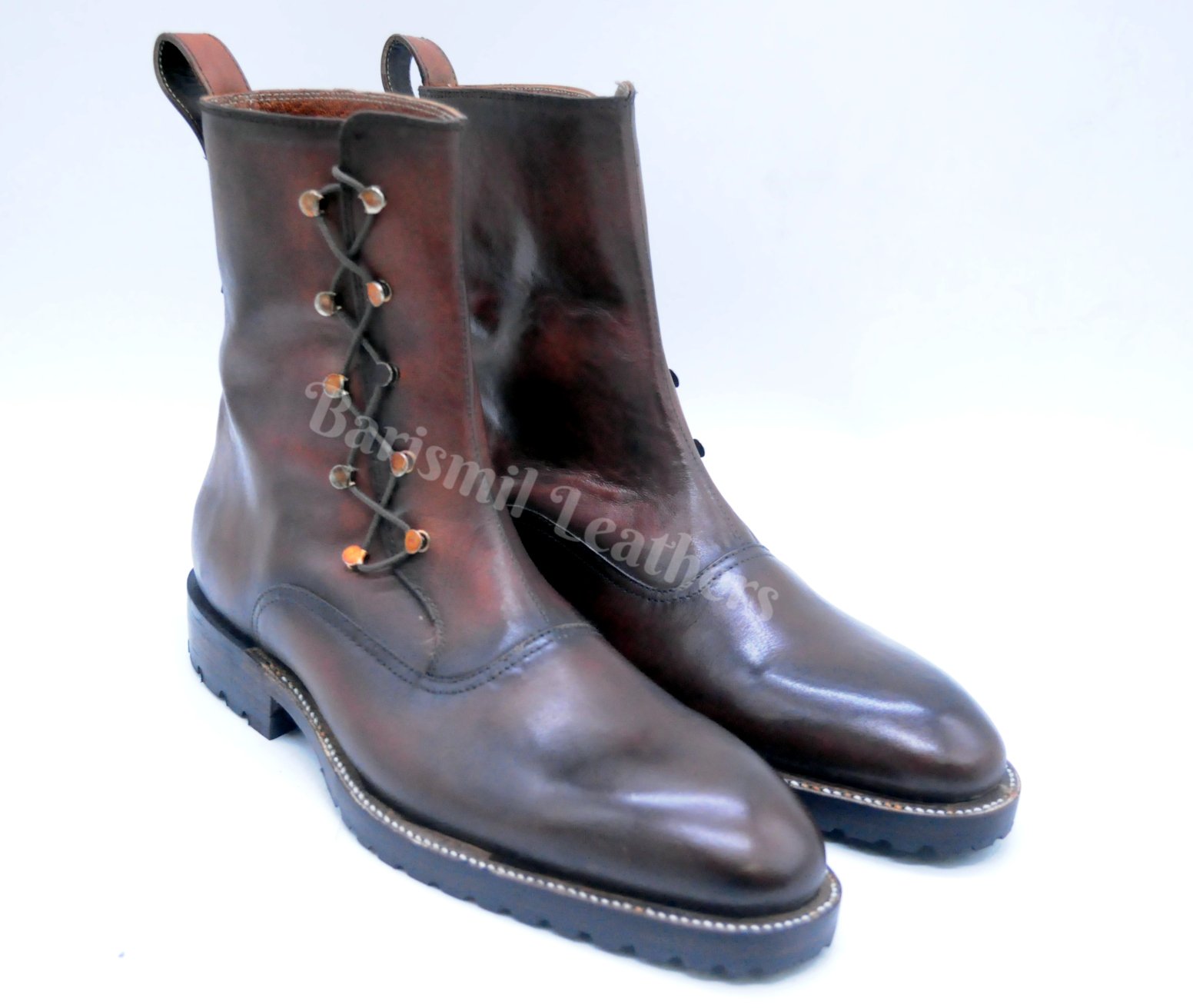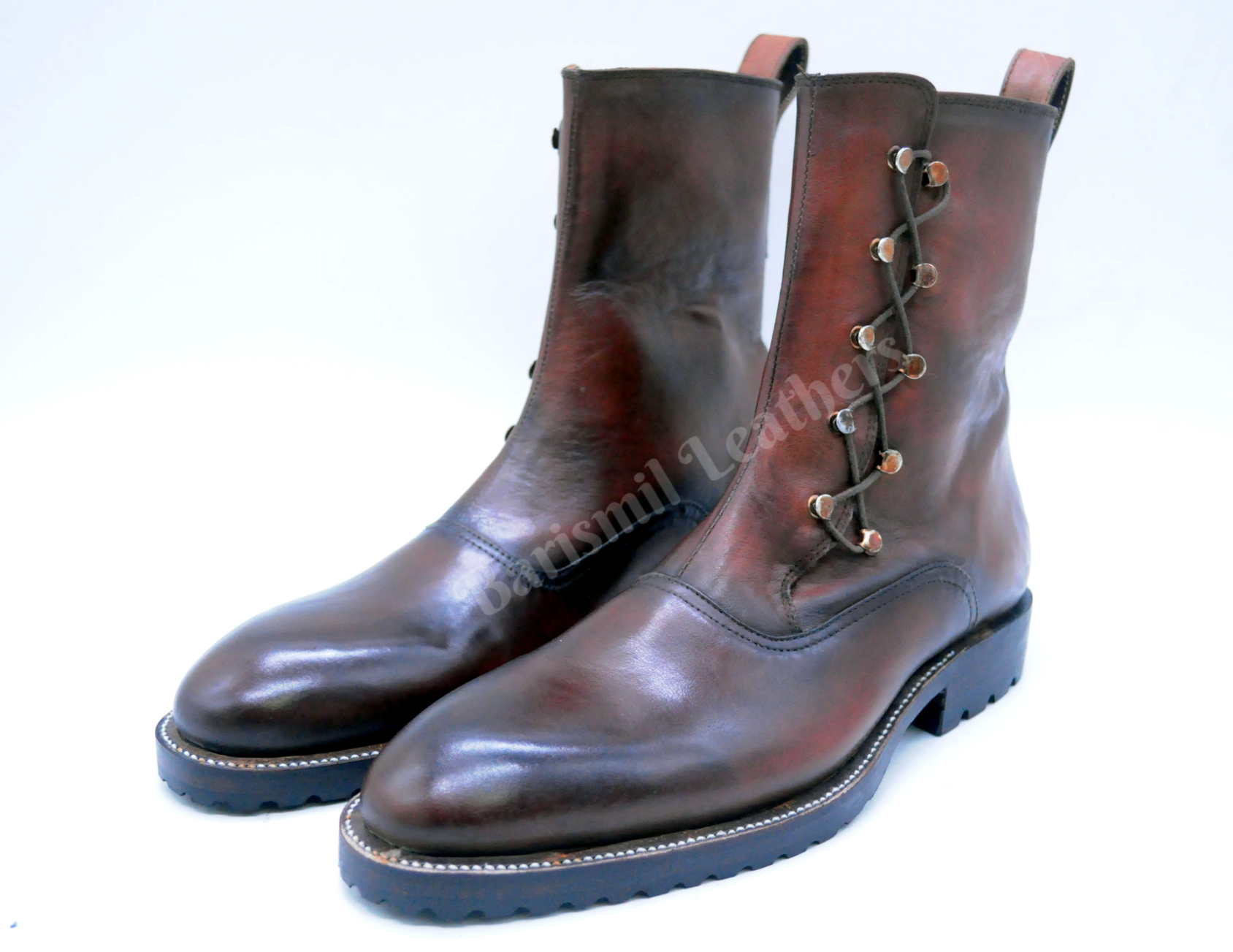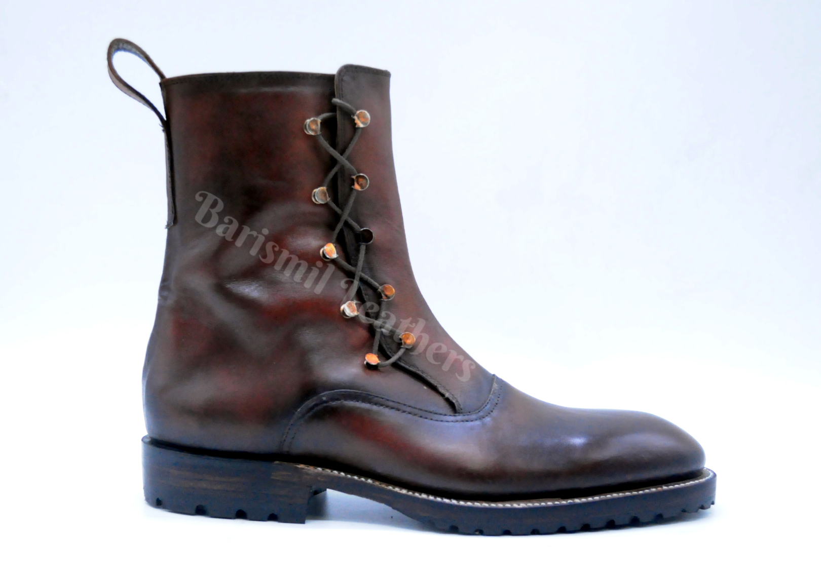 New Handmade leather ankle boot brown patina original leather lace up boot for men