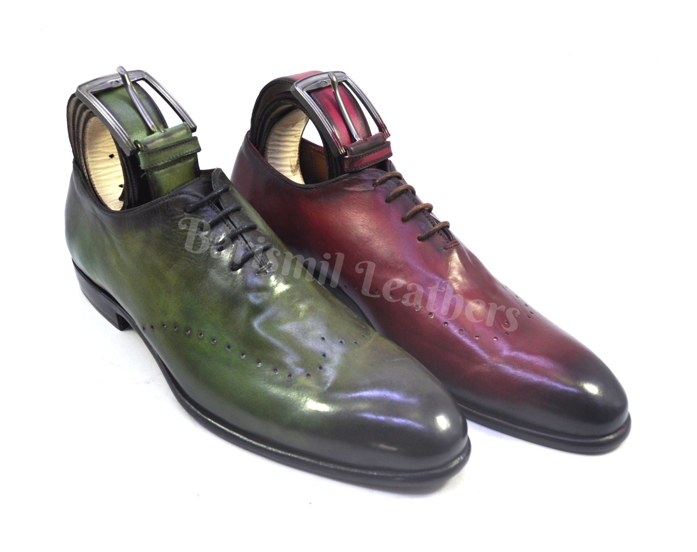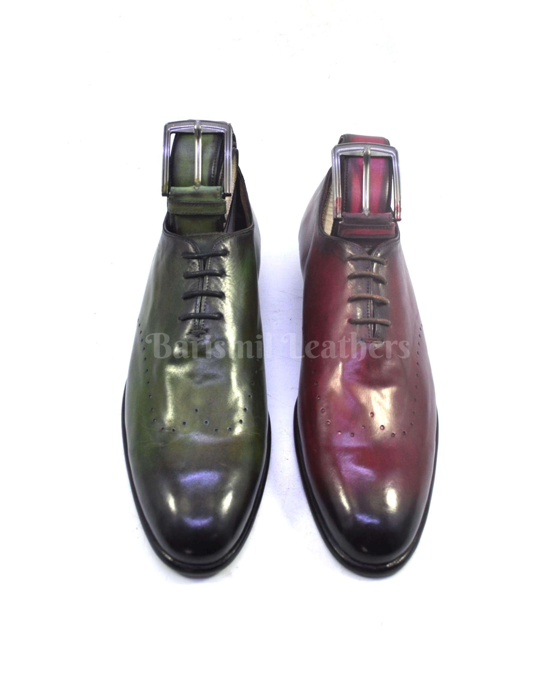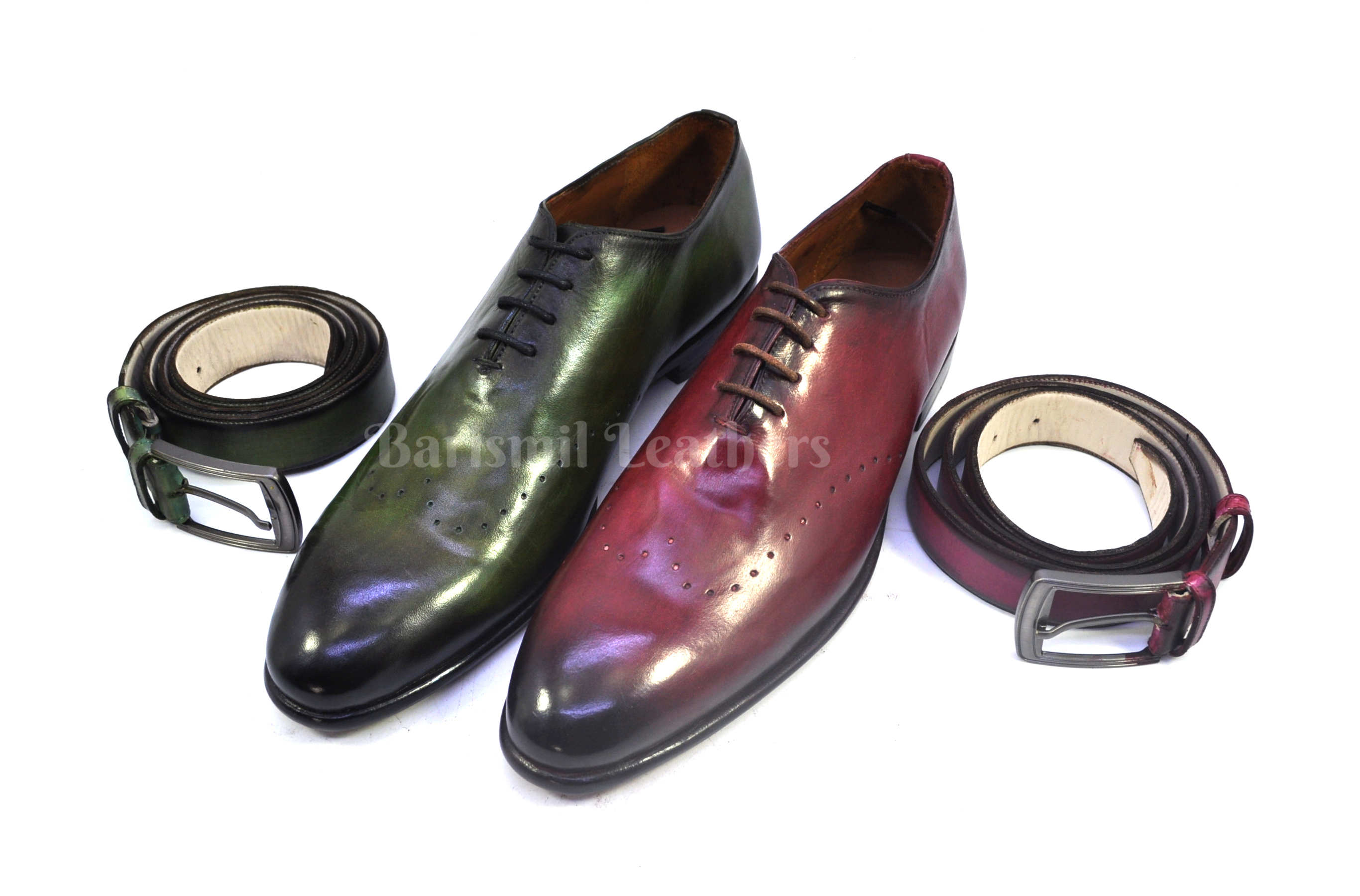 Handmade leather oxfords with matching color belts lace up men whole cut shoes.