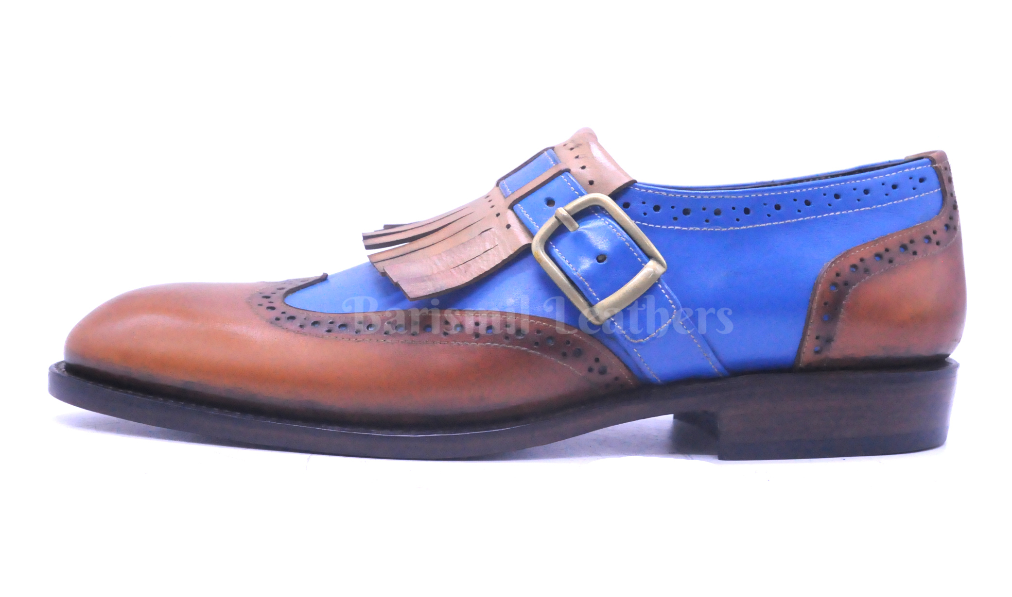 Handmade leather monk strap moccasins two tone fill loafers men dress shoes.