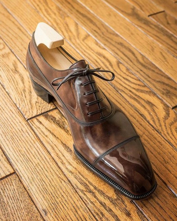 New handmade leather oxfords toe cap original leather brown patina lace up dress formal wear shoes for men.