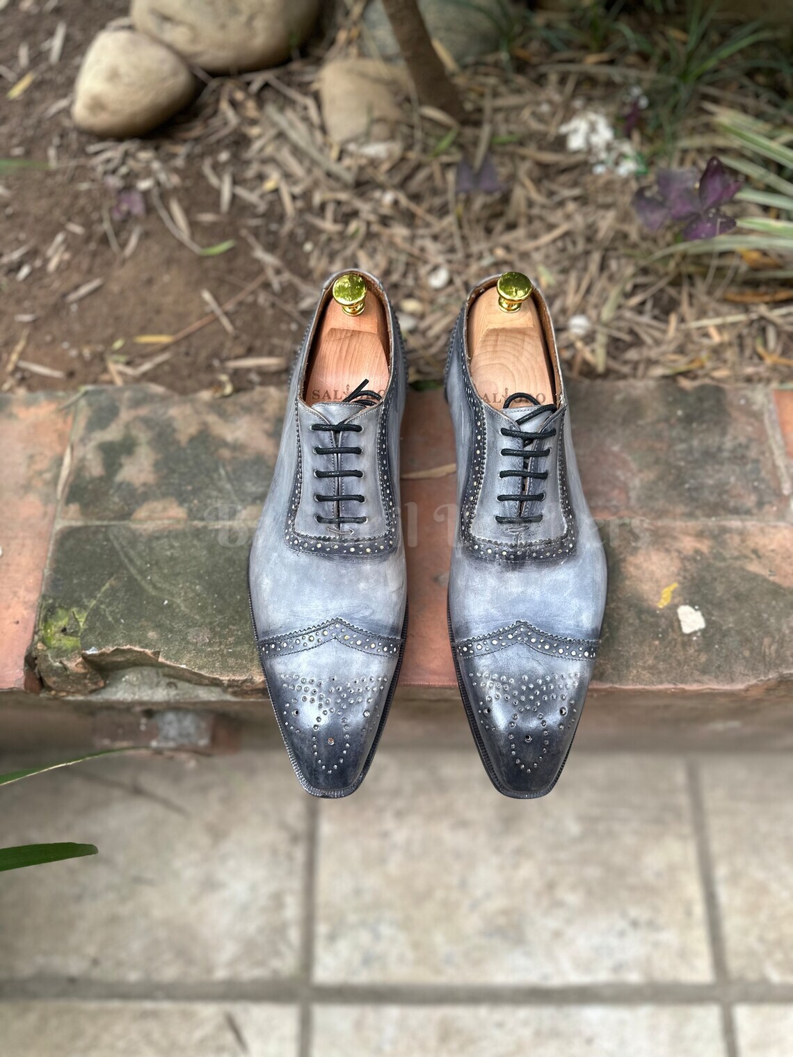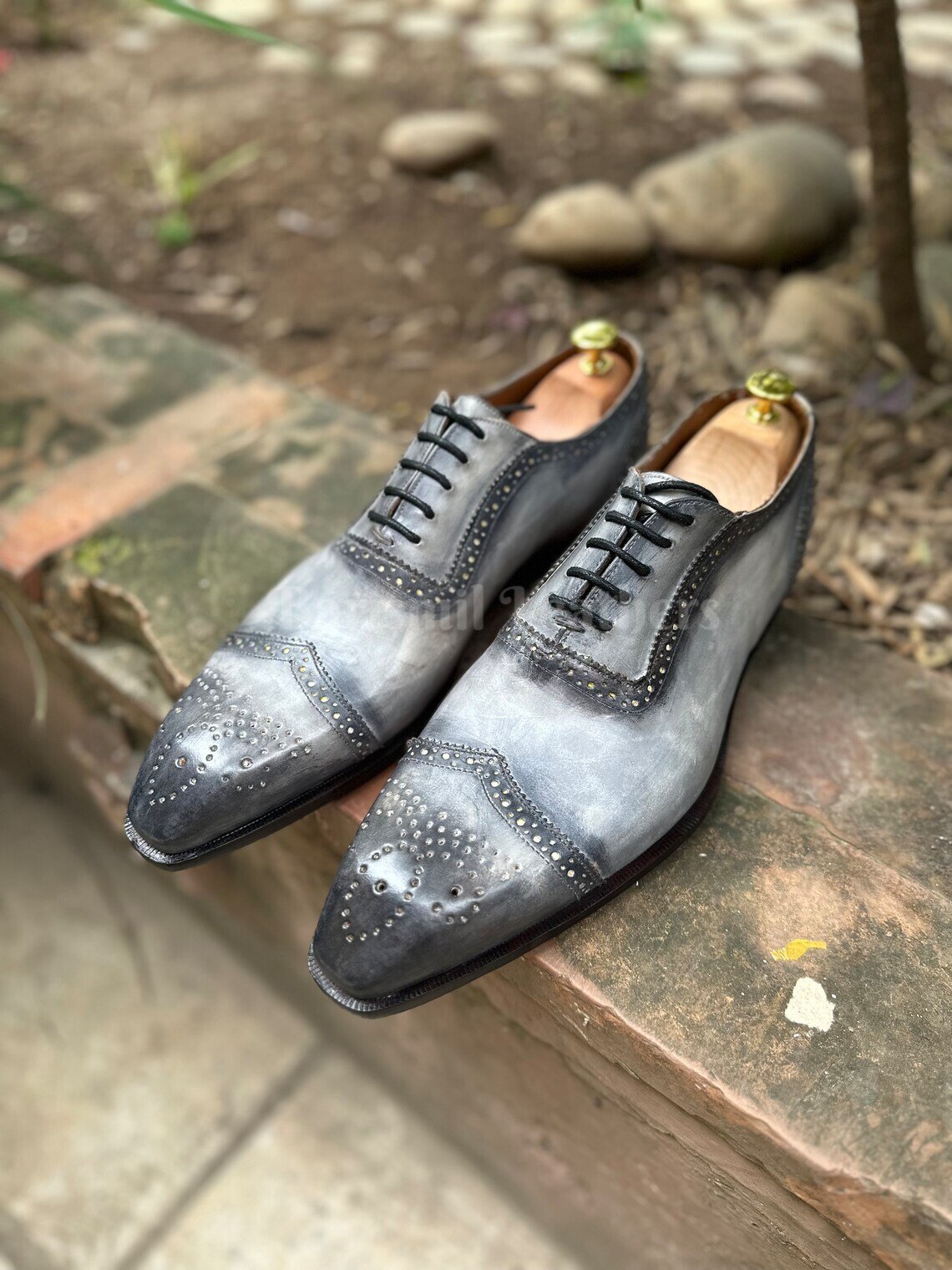 New handmade leather oxfords gray patina men dress lace up formal wear original leather shoes custom made on order.