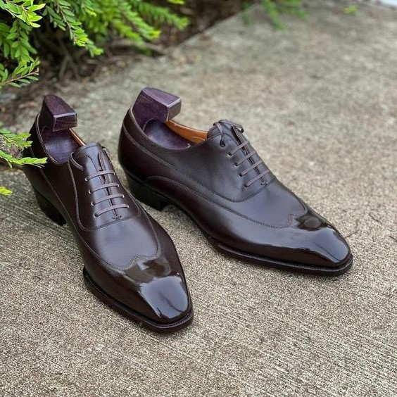 Handmade leather oxfords brown original leather lace up men dress formal wear shoes.