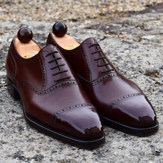 Handmade leather oxfords burgundy patina toe cap semi brogue lace up shoes dress shoes formal wear leather shoes for men.