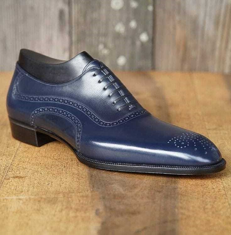 New leather oxfords shoes handmade blue pure leather dress lace up shoes formal wear men shoes custom made on orders.