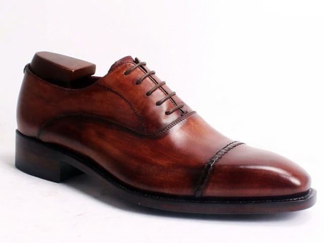 Handmade leather oxfords toe cap brown patina lace up leather men shoes dress shoes formal wear shoes custom made on orders.