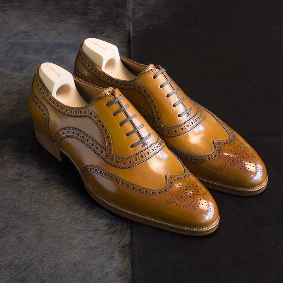 Handmade leather oxfords shoes brown original leather wingtip and brogue lace up shoes formal wear and causal wear shoes ready to wear custom made shoes.