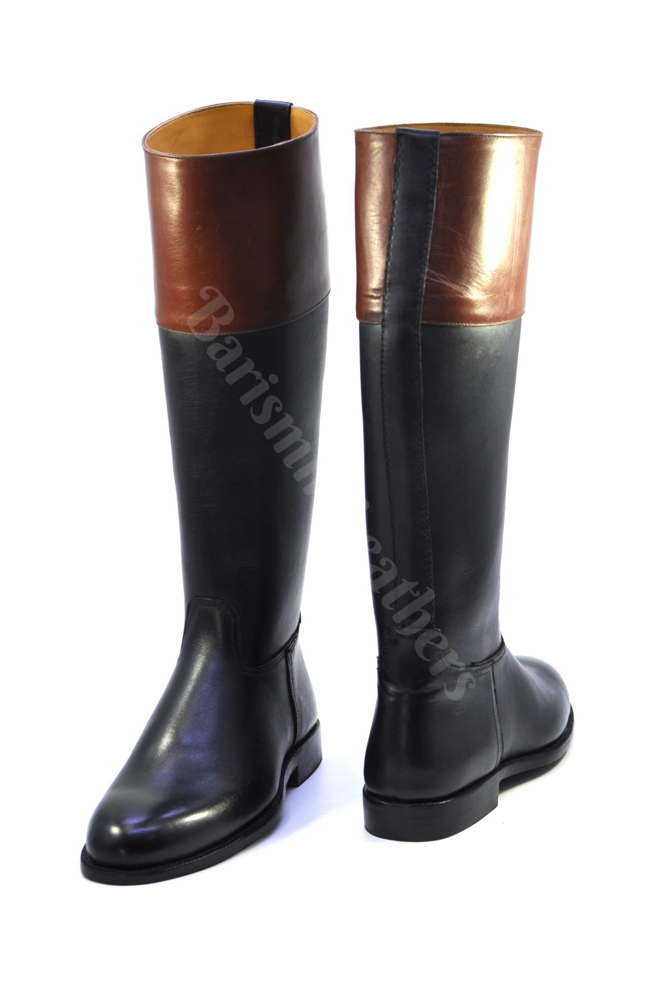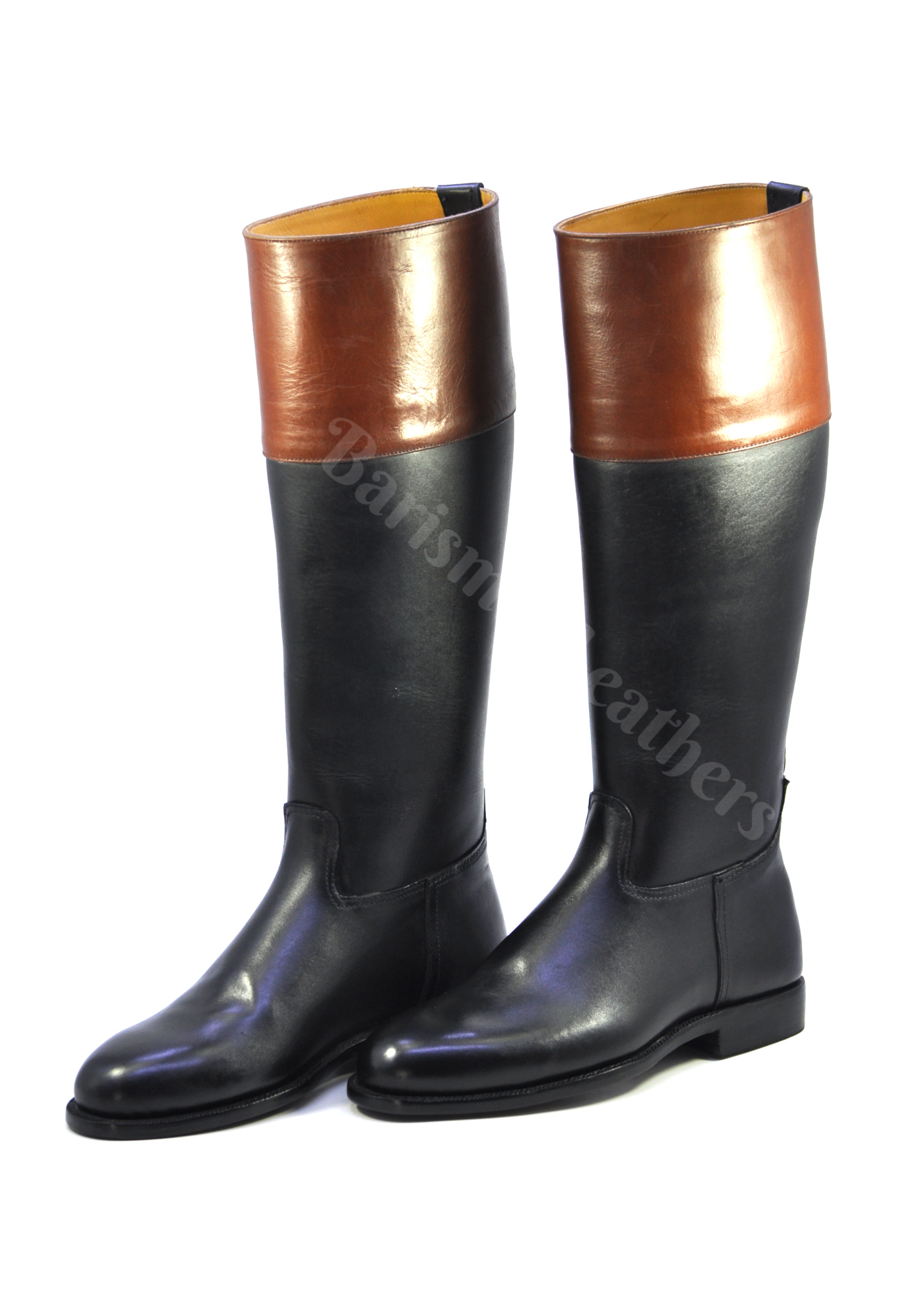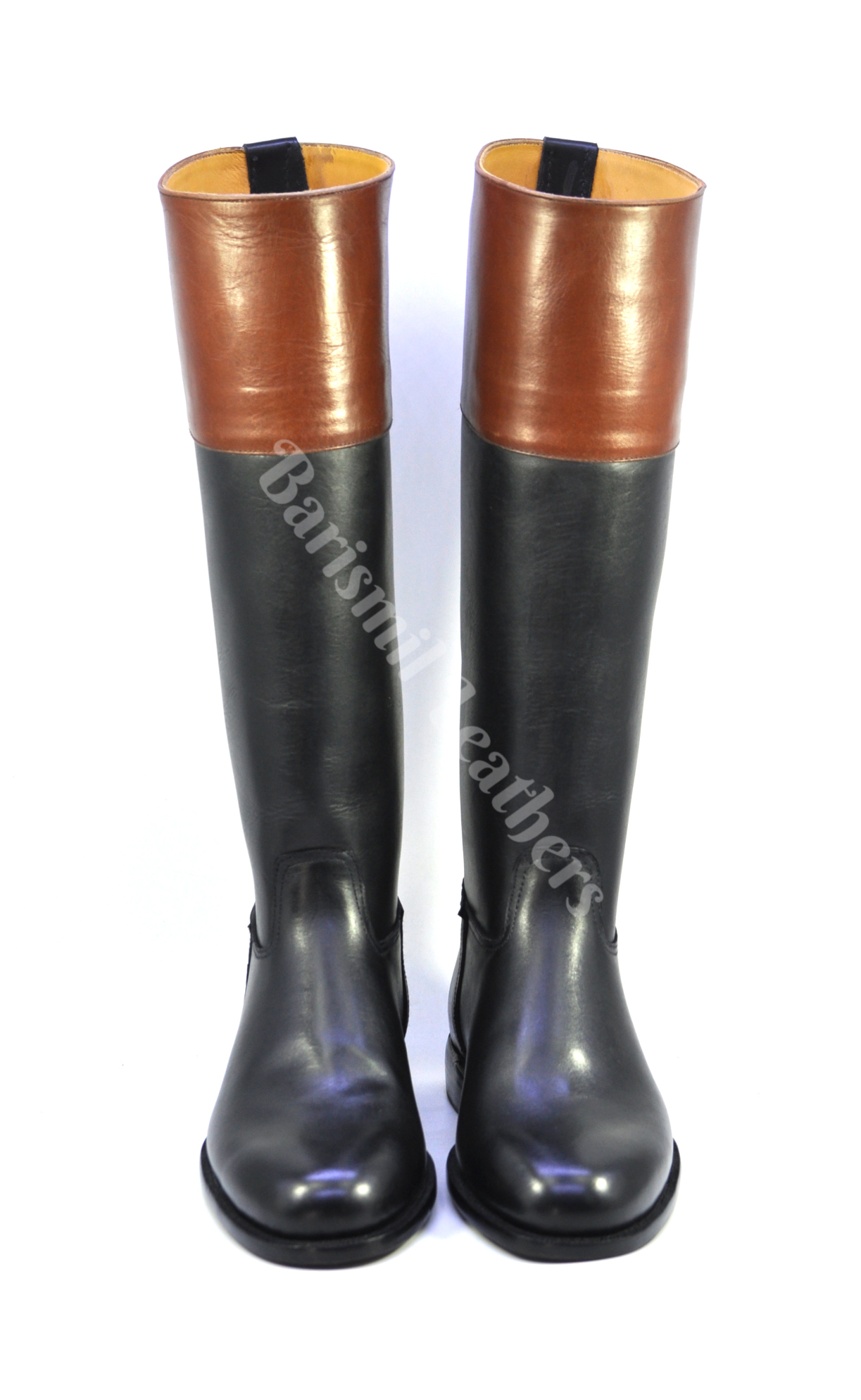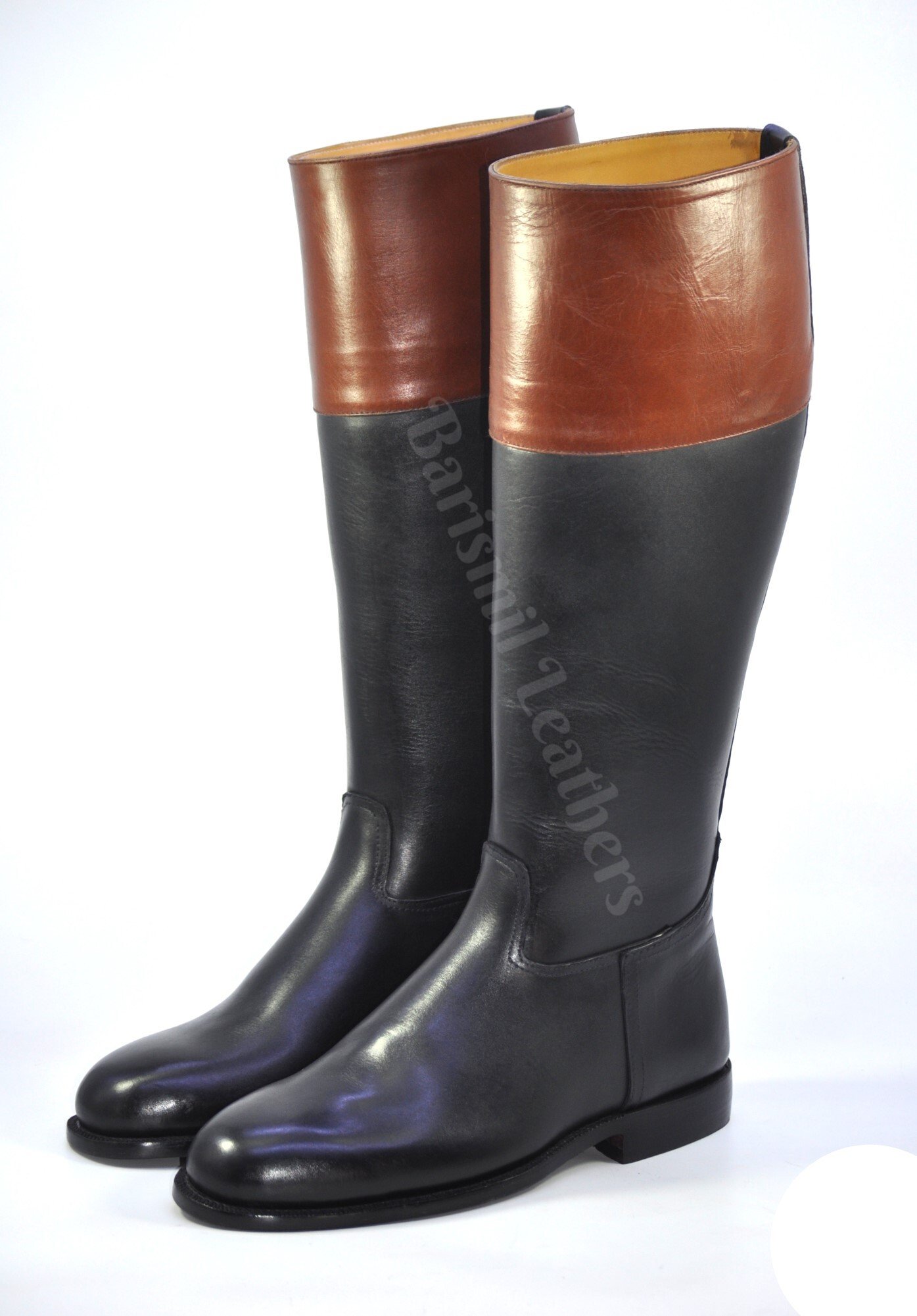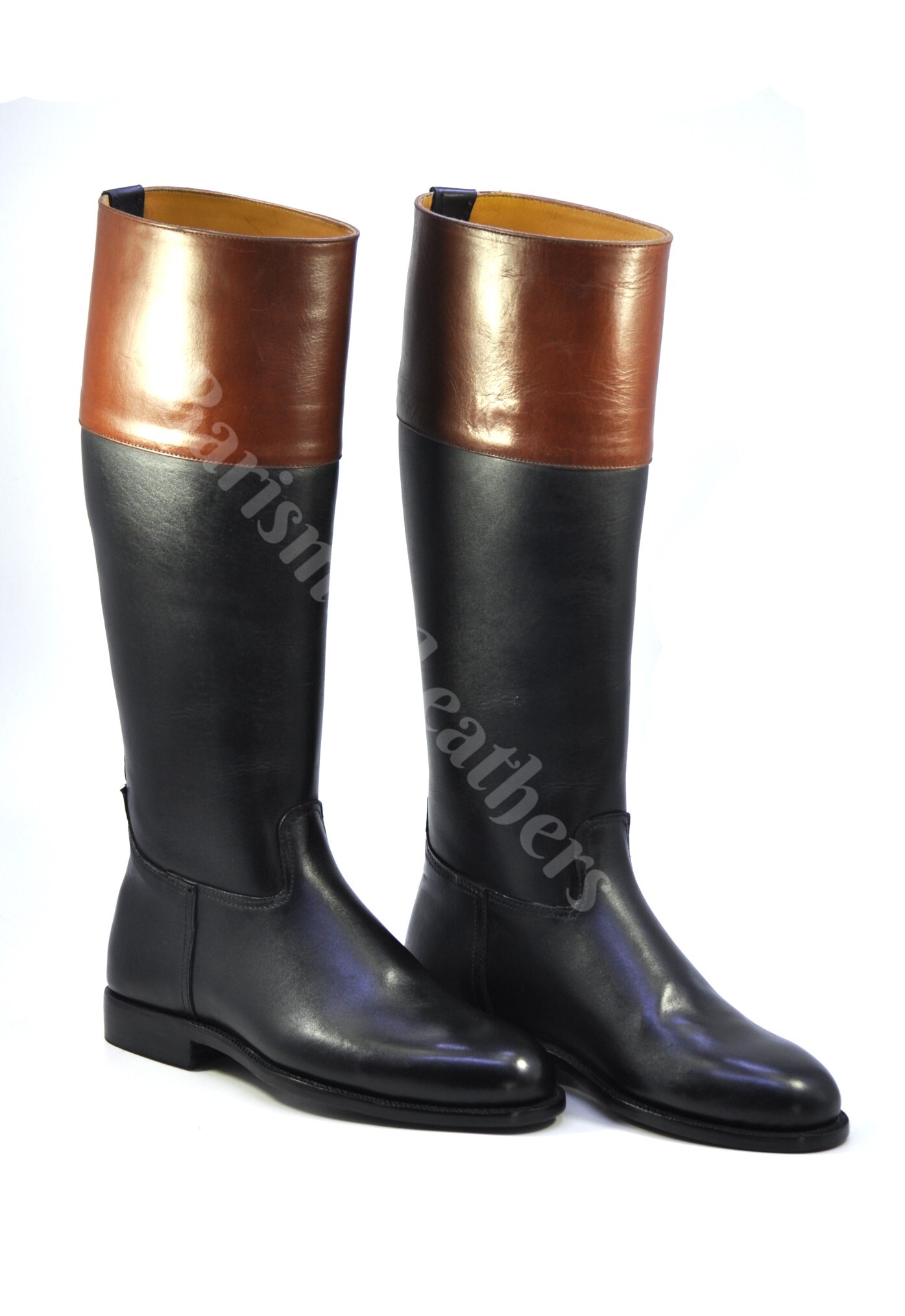 New Handmade riding boots black leather two tone men custom made riding boots.