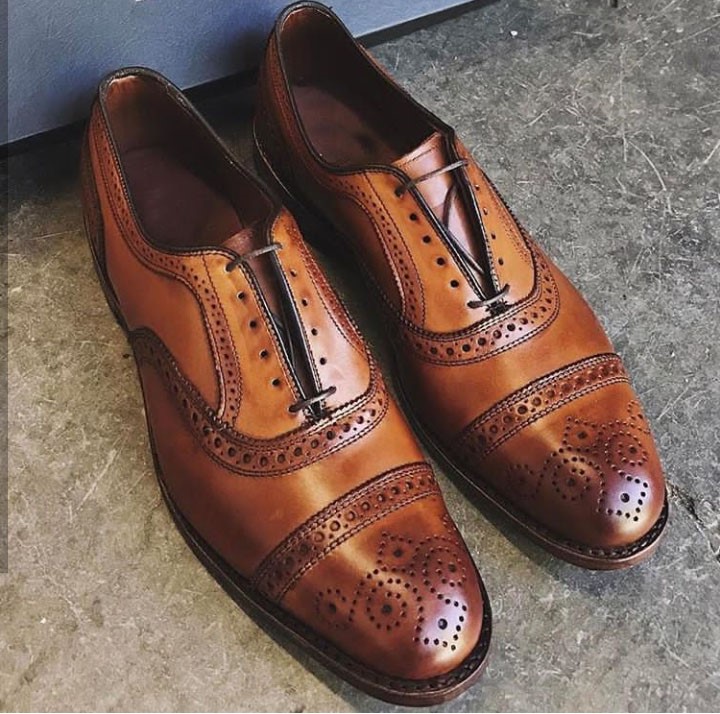 Handmade leather oxfords brown patina toe cap wingtip and brogue lace up dress formal wear men shoes.
