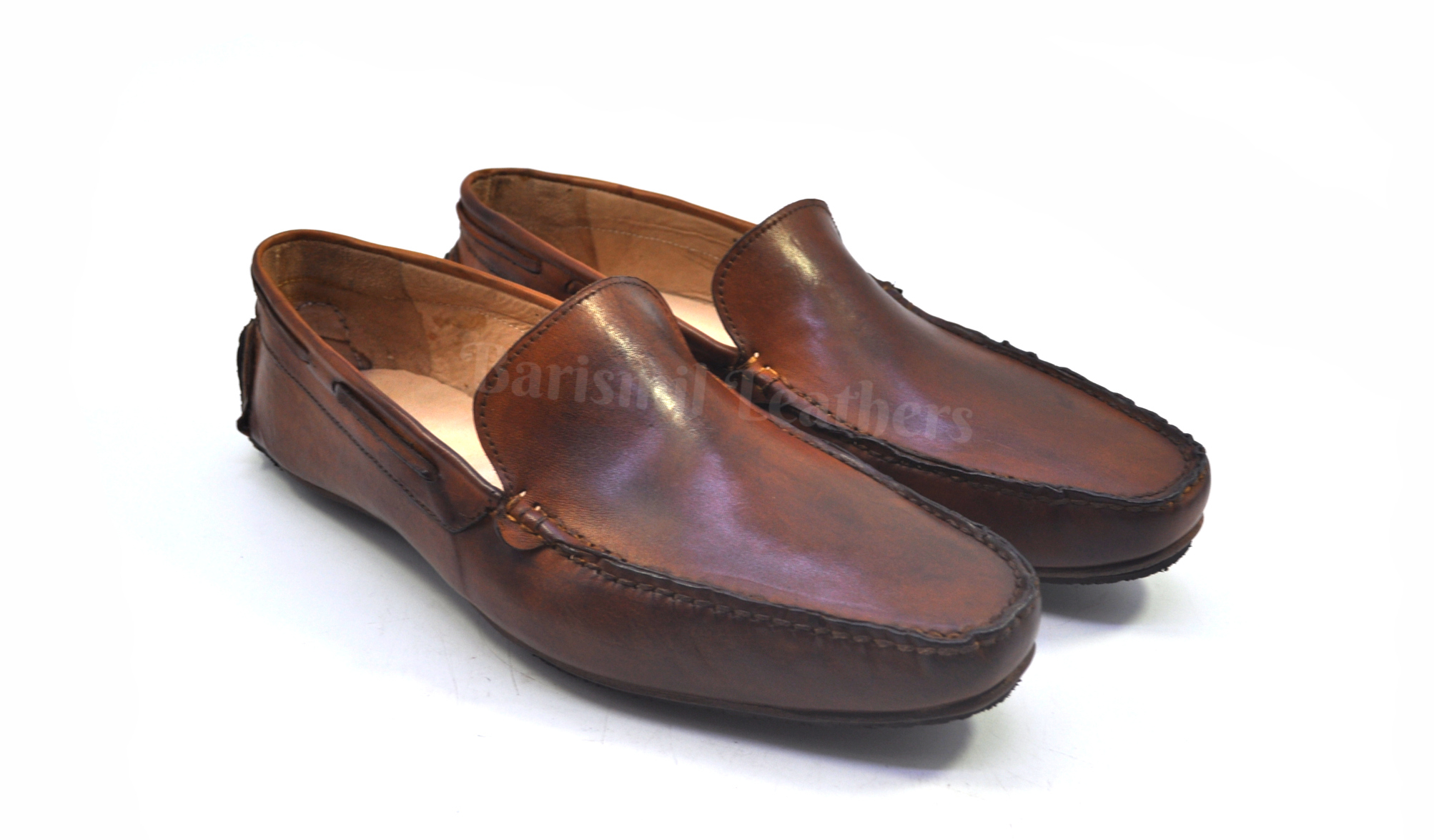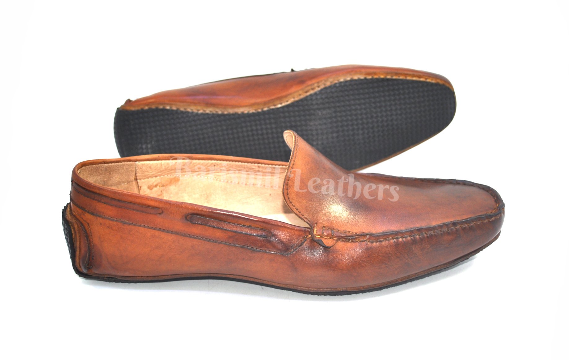 New handmade driver loafers brown patina men dress original leather shoes formal wear shoes.