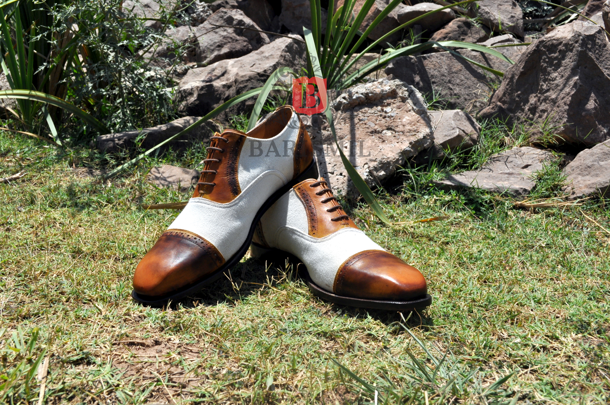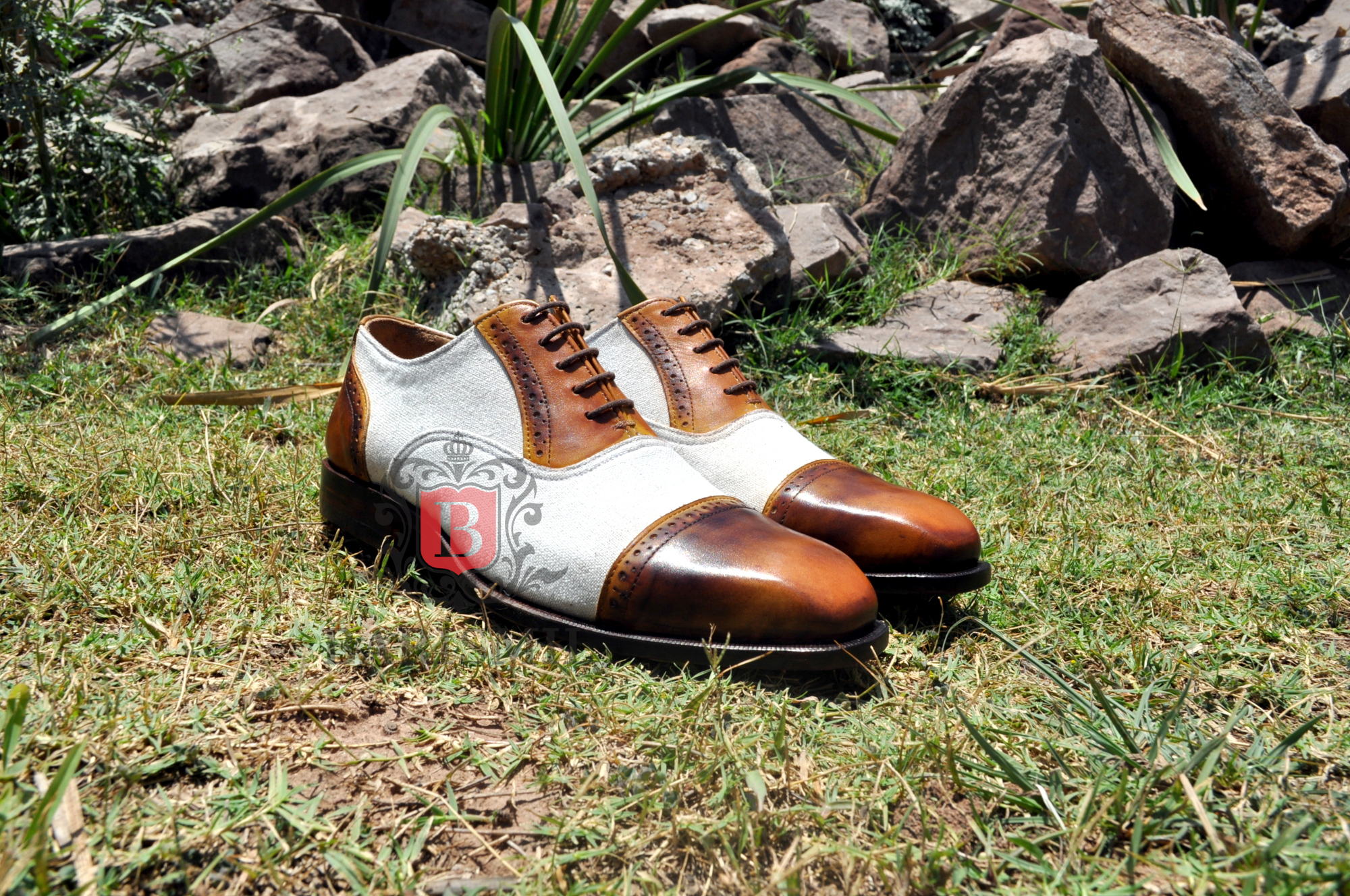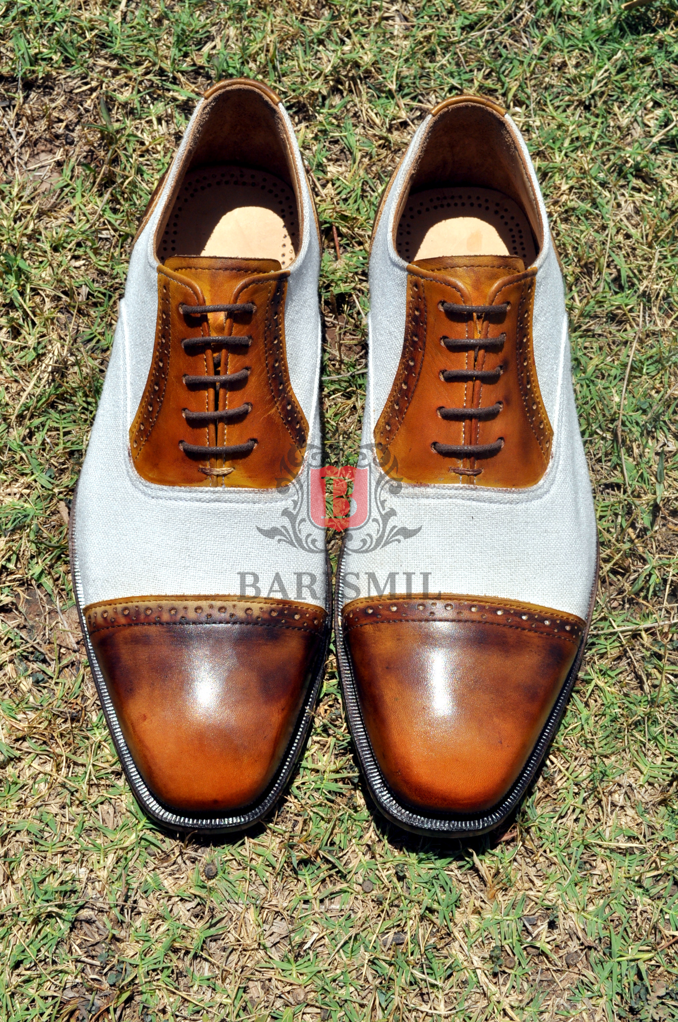 Handmade leather oxfords shoes premium leather two tone leather toe cap lace up men dress shoes