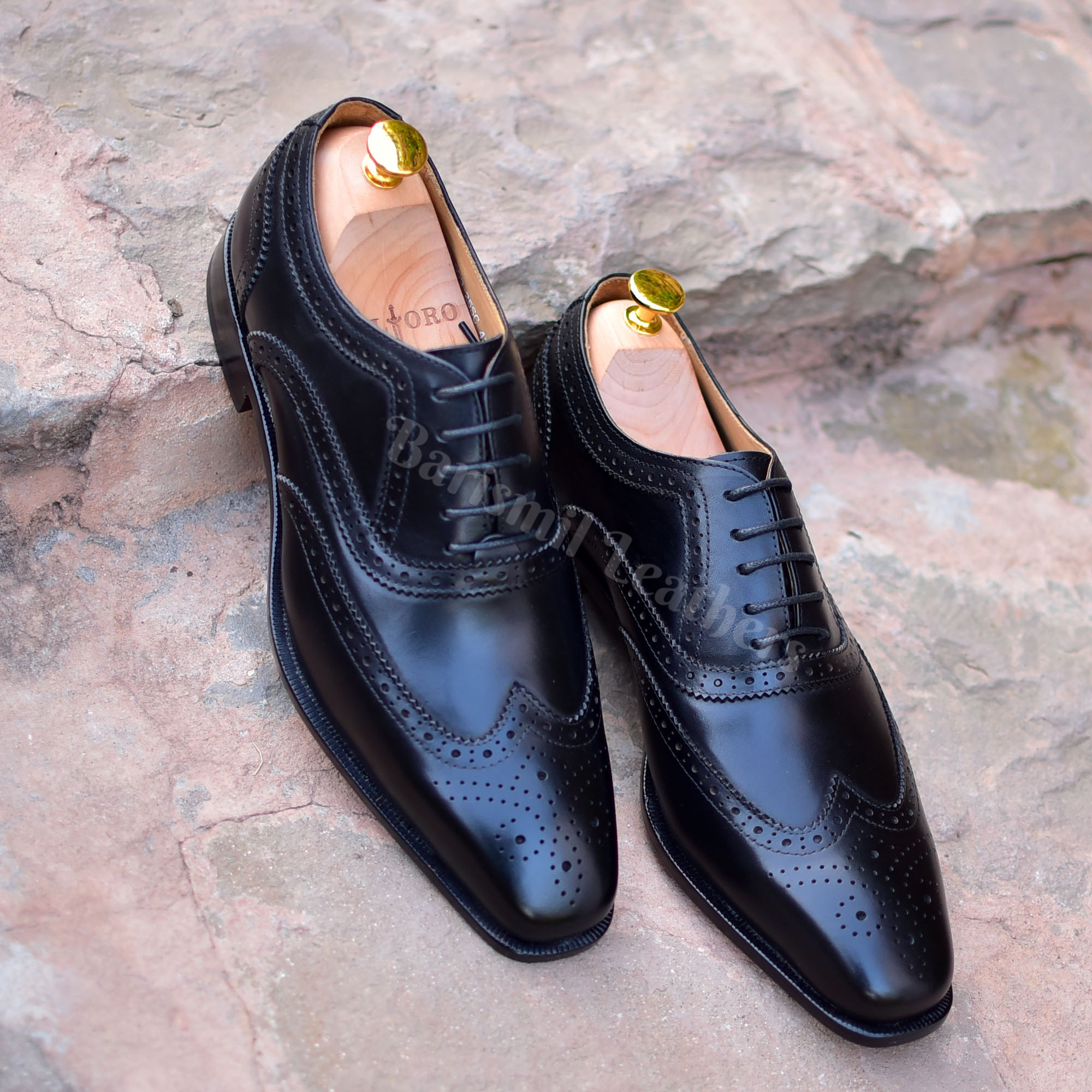 Handmade leather oxfords wingtip and brogue black leather lace up men dress shoes formal wear handmade shoes custom made on orders, wedding shoes, handmade shoes, leather shoes.